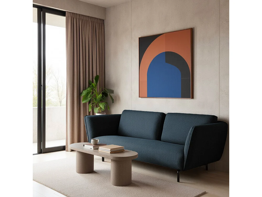 Melrose - Canapé 3 places en tissu bouclette - Bleu foncé