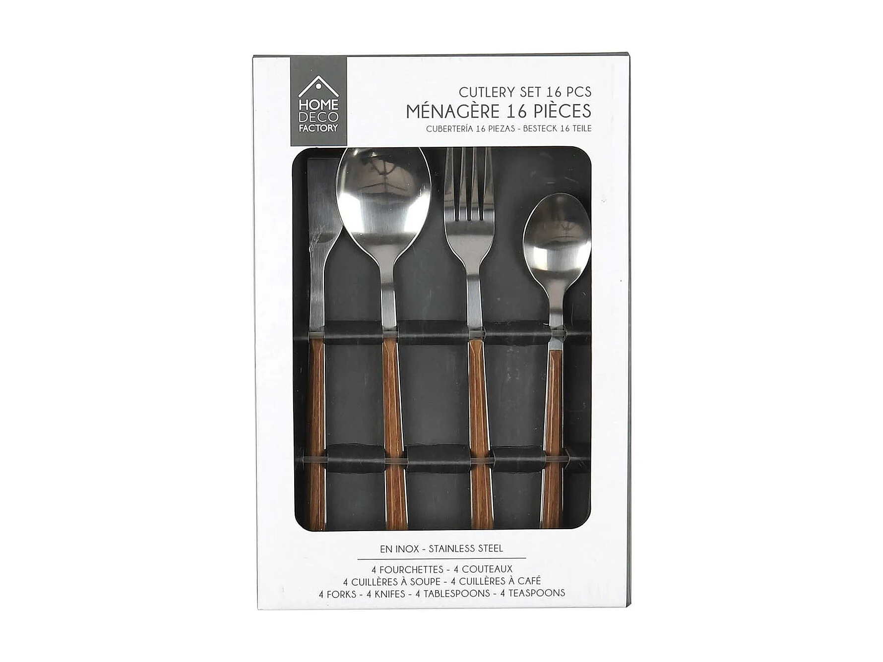 Ménagère 16 Pièces en Inox Manche Effet Bois - BONNIS