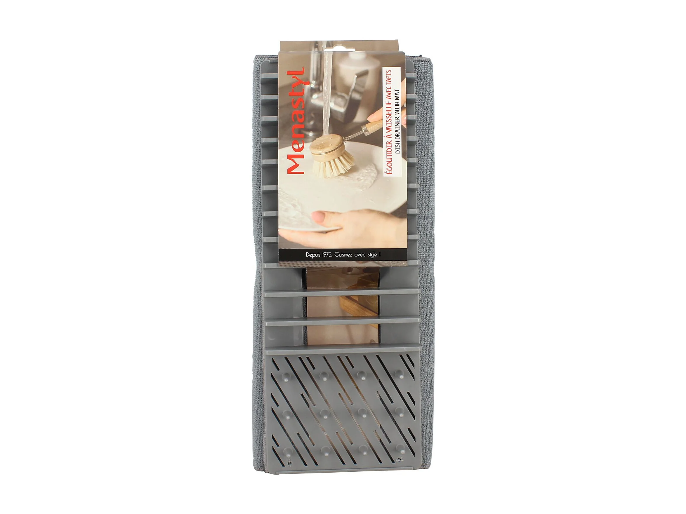 Menastyl - égouttoir A Vaisselle En Polypropylene Avec Tapis En Polyester Gris