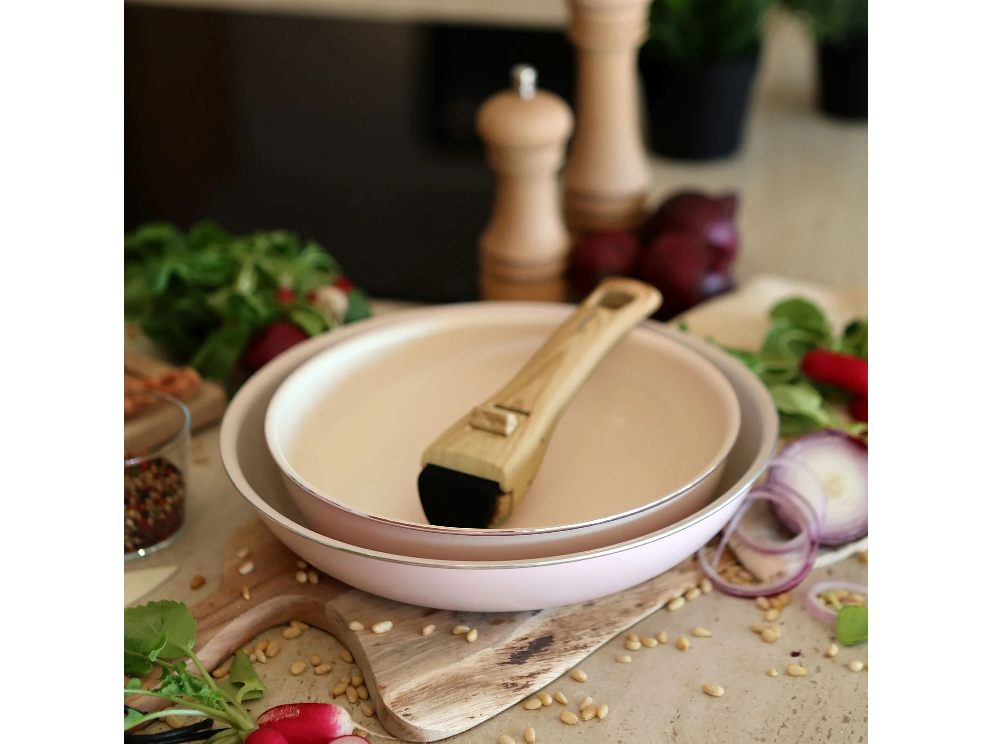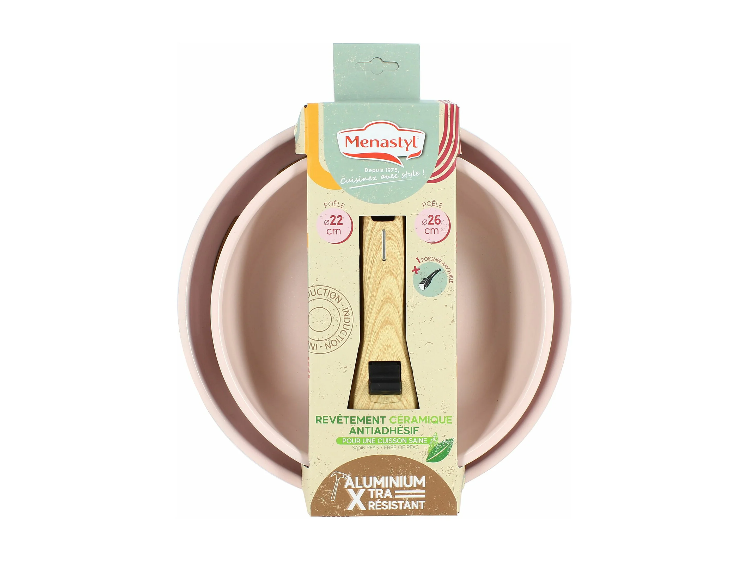 Menastyl - Lot De 2 Poeles Colorama 22 Et 26cm En Aluminium Rose Avec Poignee