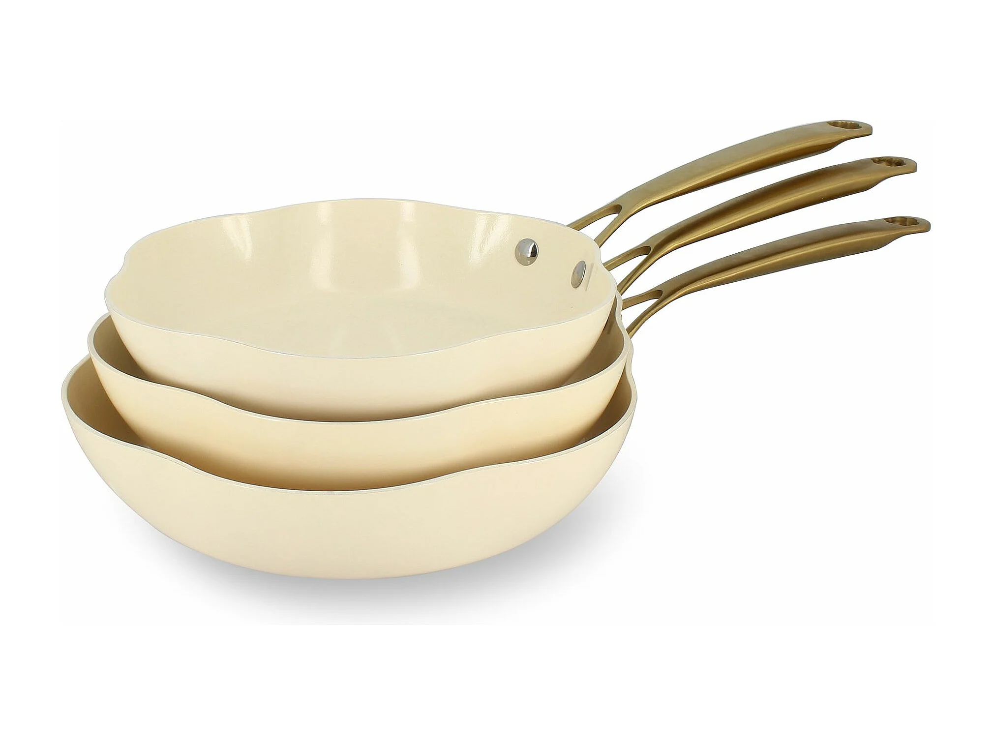 Menastyl - Lot De 3 Poeles Dahlia 24/26 Et 28cm En Aluminium Recycle Beige