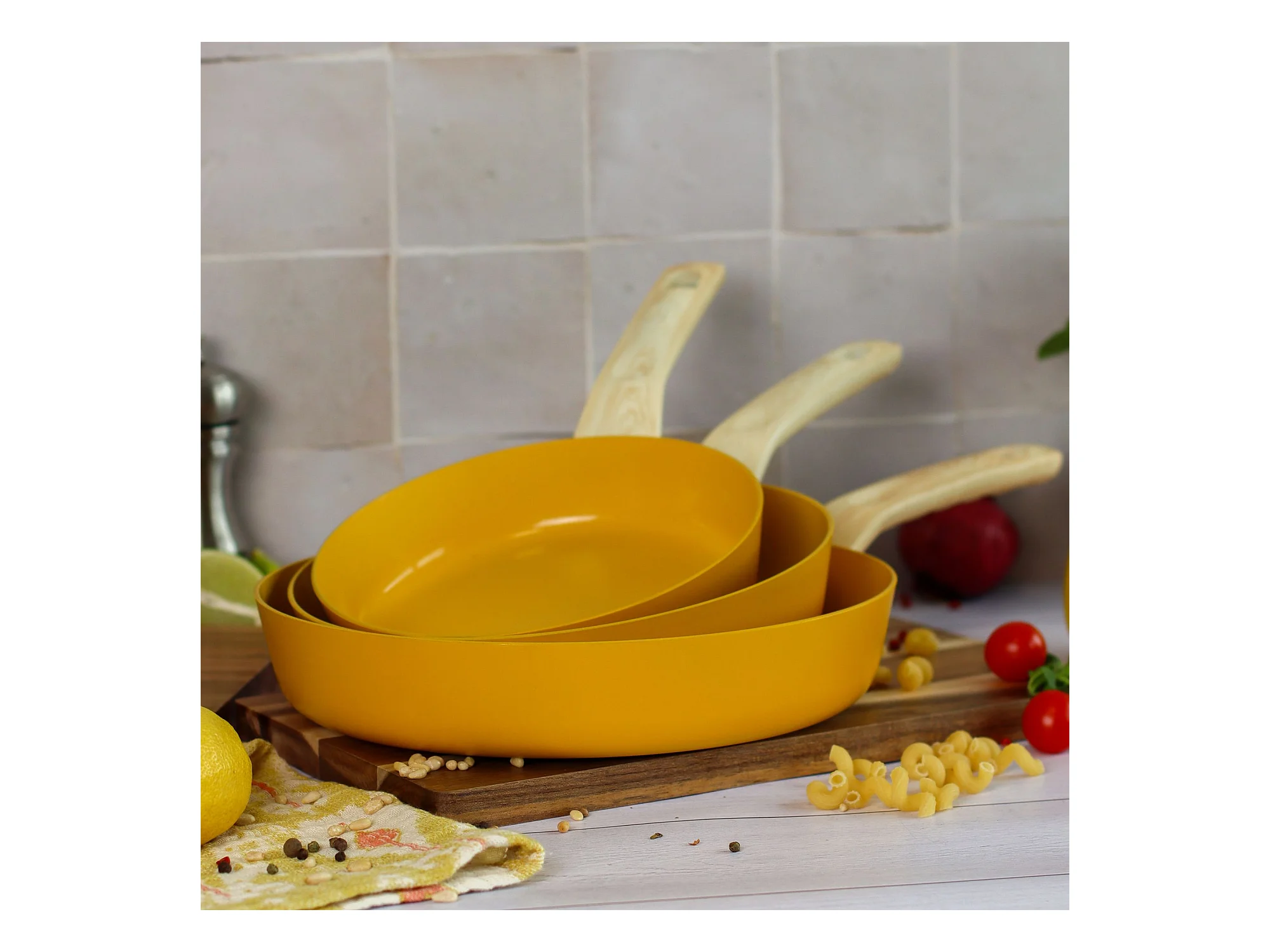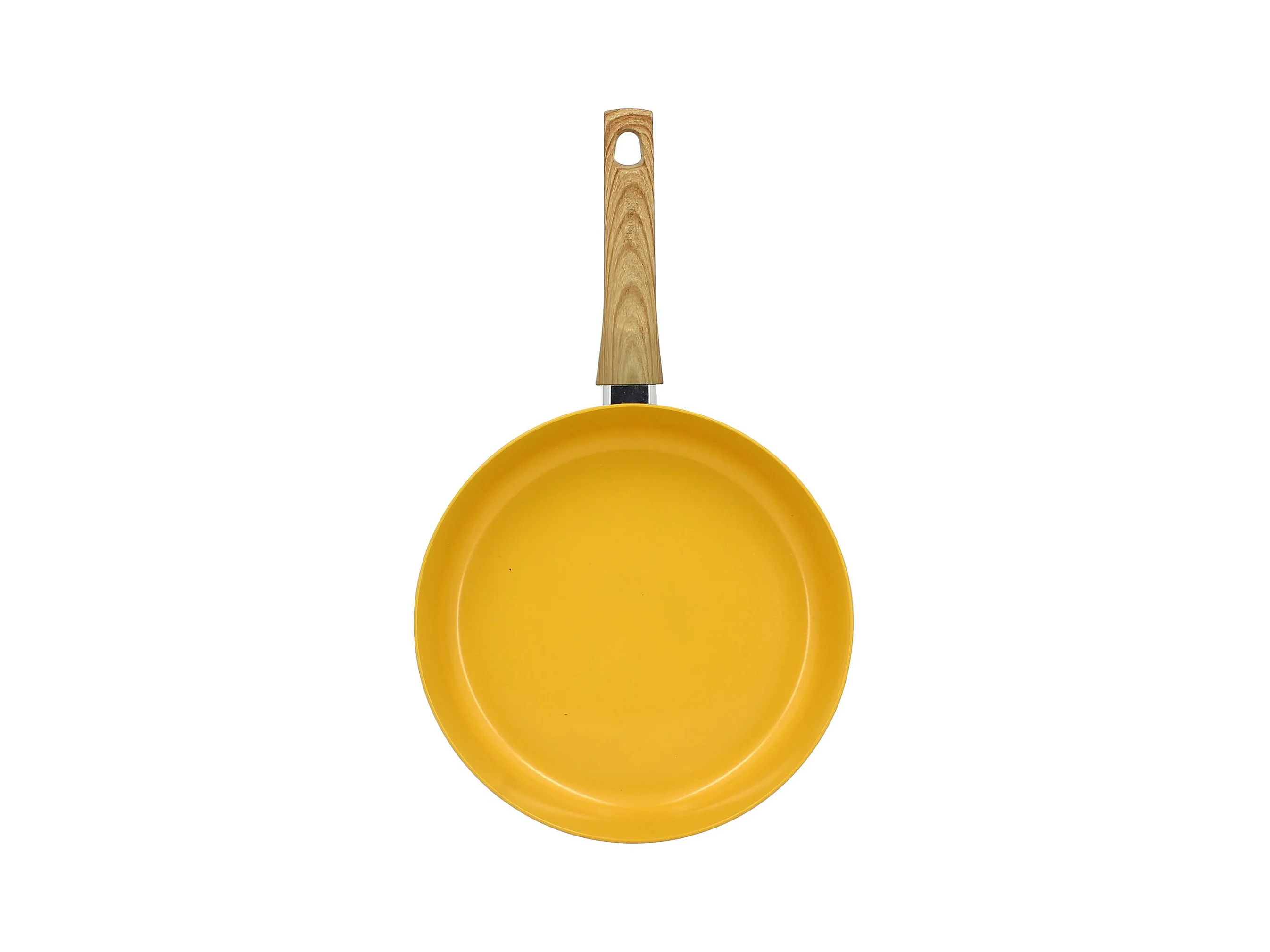 Ogo Living - Poele Ector 28cm En Alu Revetement Ceramique Jaune Avec Manche Bois