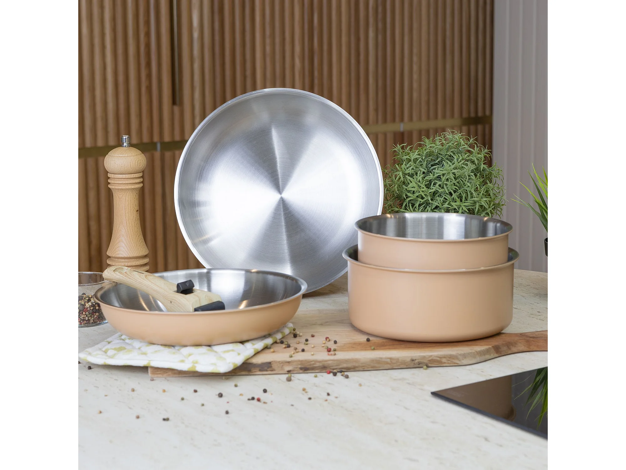 Menastyl - Lot De 3 Poeles Dahlia 24/26 Et 28cm En Aluminium Recycle Beige