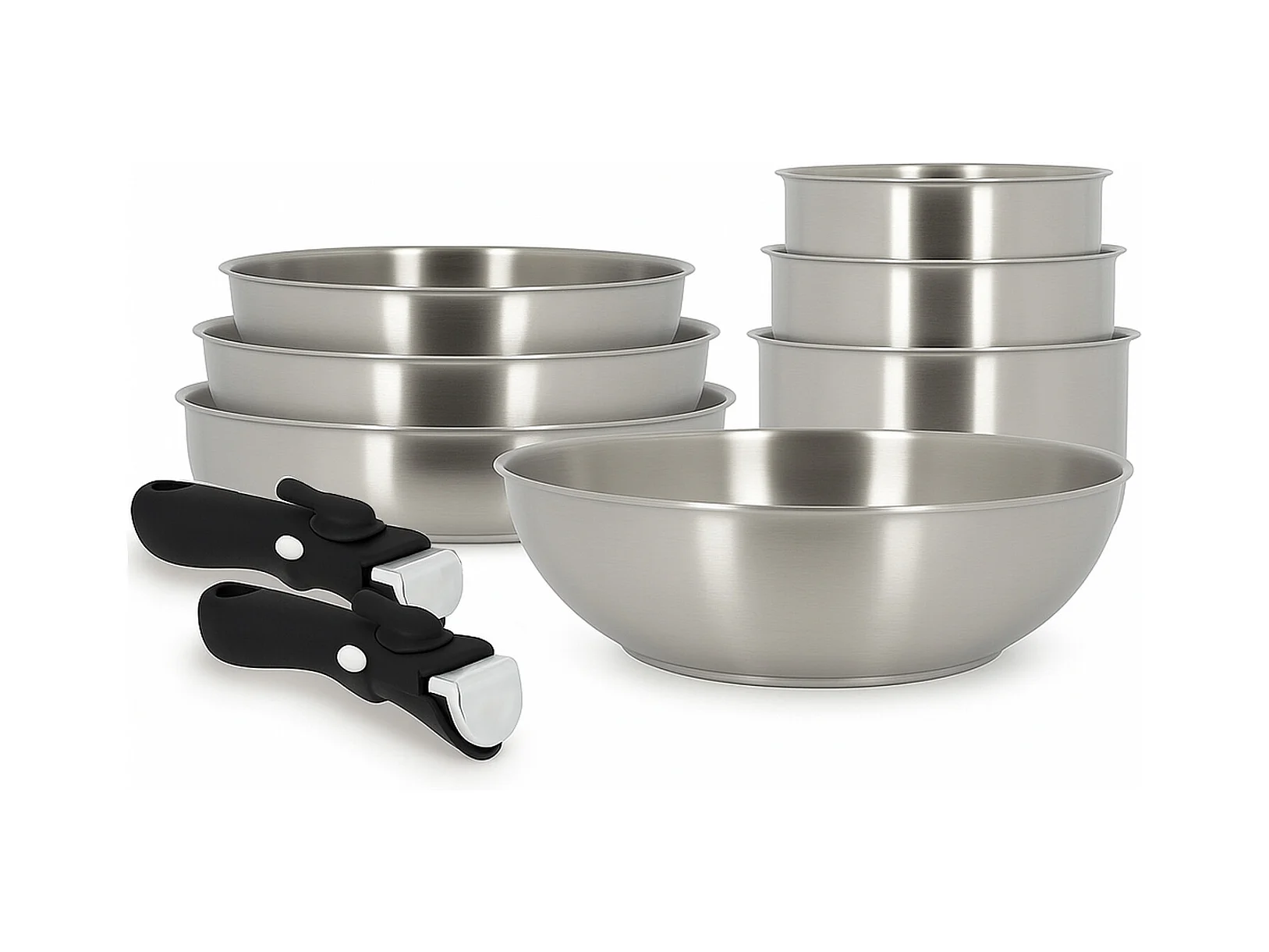 Menastyl - Set 9 Pieces Iris Poele Casserole Wok Poignee En Acier Inoxydable Inducti