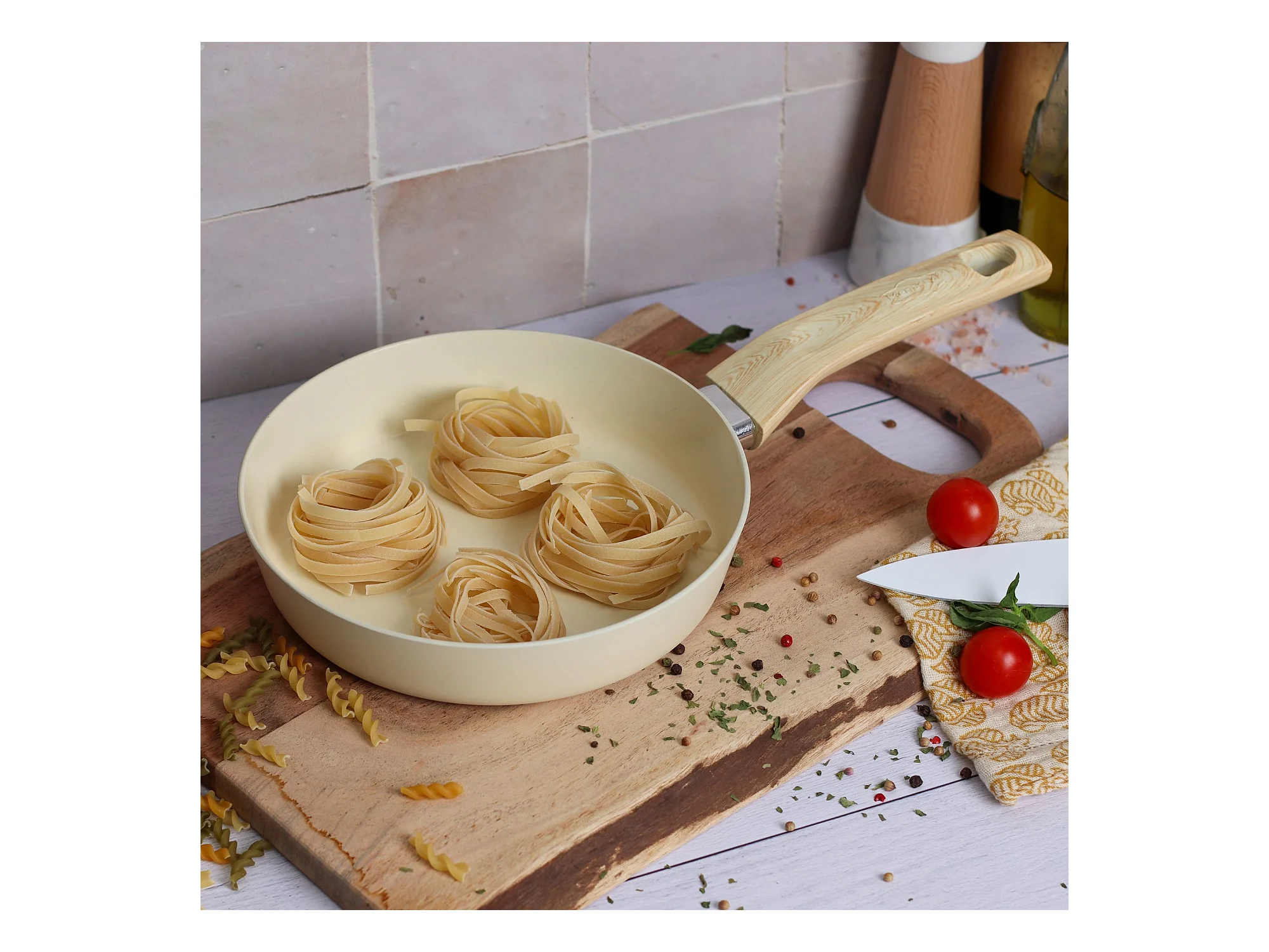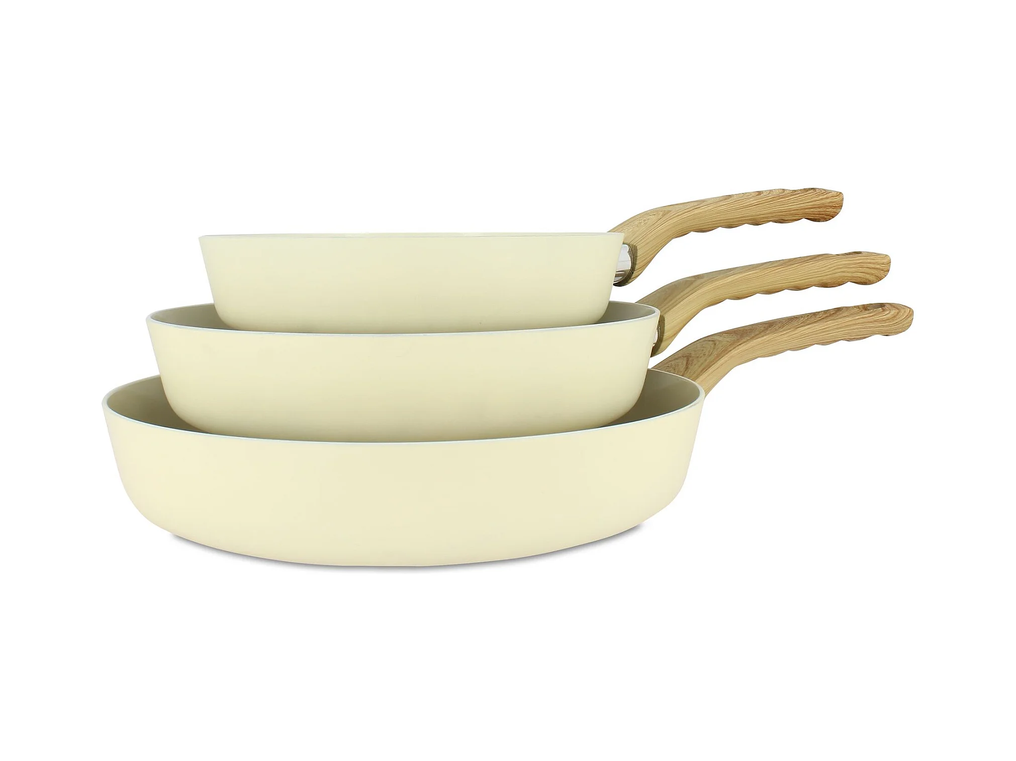 Menastyl - Set De 3 Poeles Colorama Creme - Poele 20/24 Et 28 Cm - En Aluminium - Revetement Antiadhesif En Ceramique