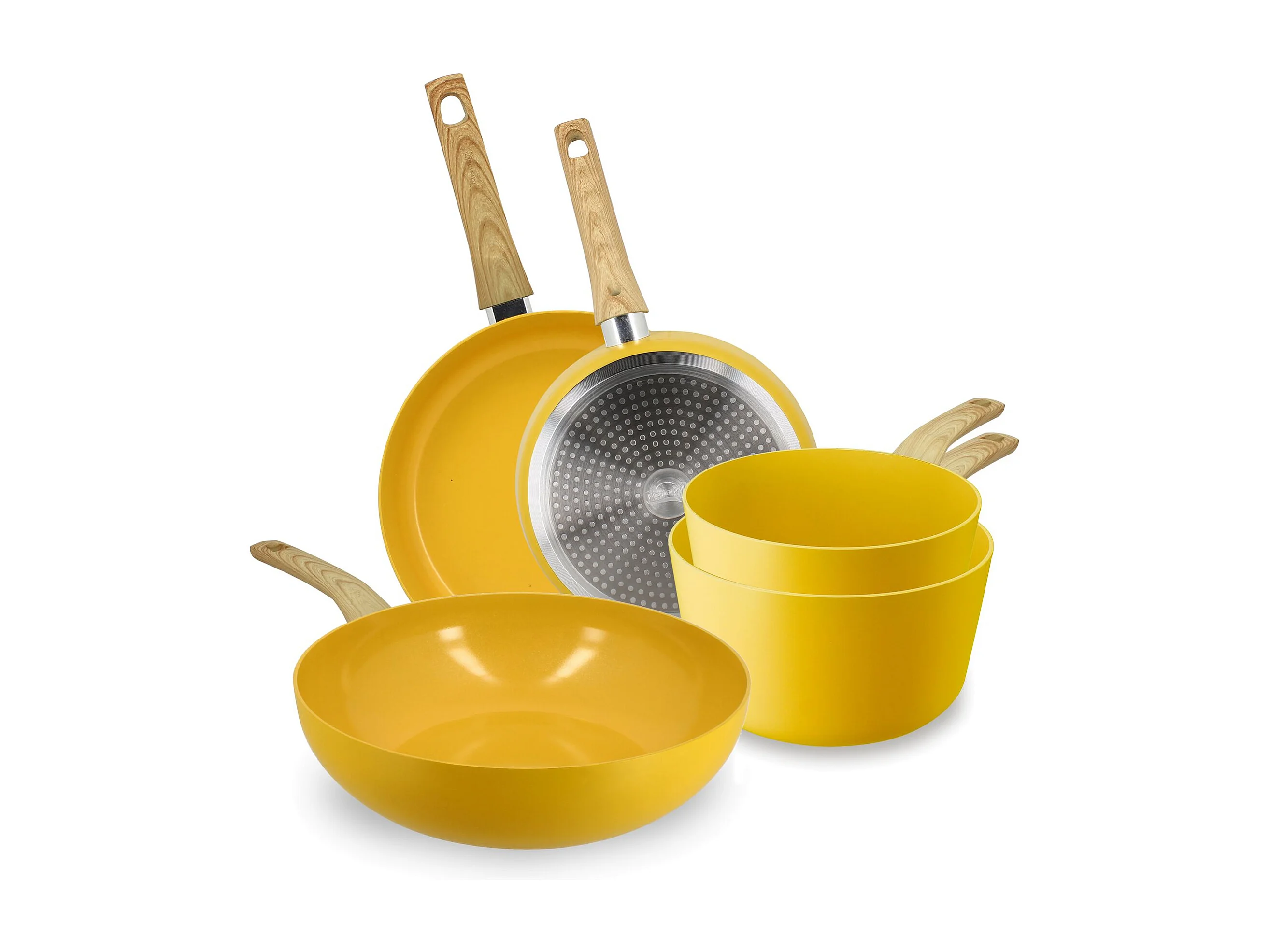 Menastyl - Set De 5 Pieces Colorama Safran - Poeles/casseroles/wok - En Aluminium - Revetement Antiadhesif En Ceramique