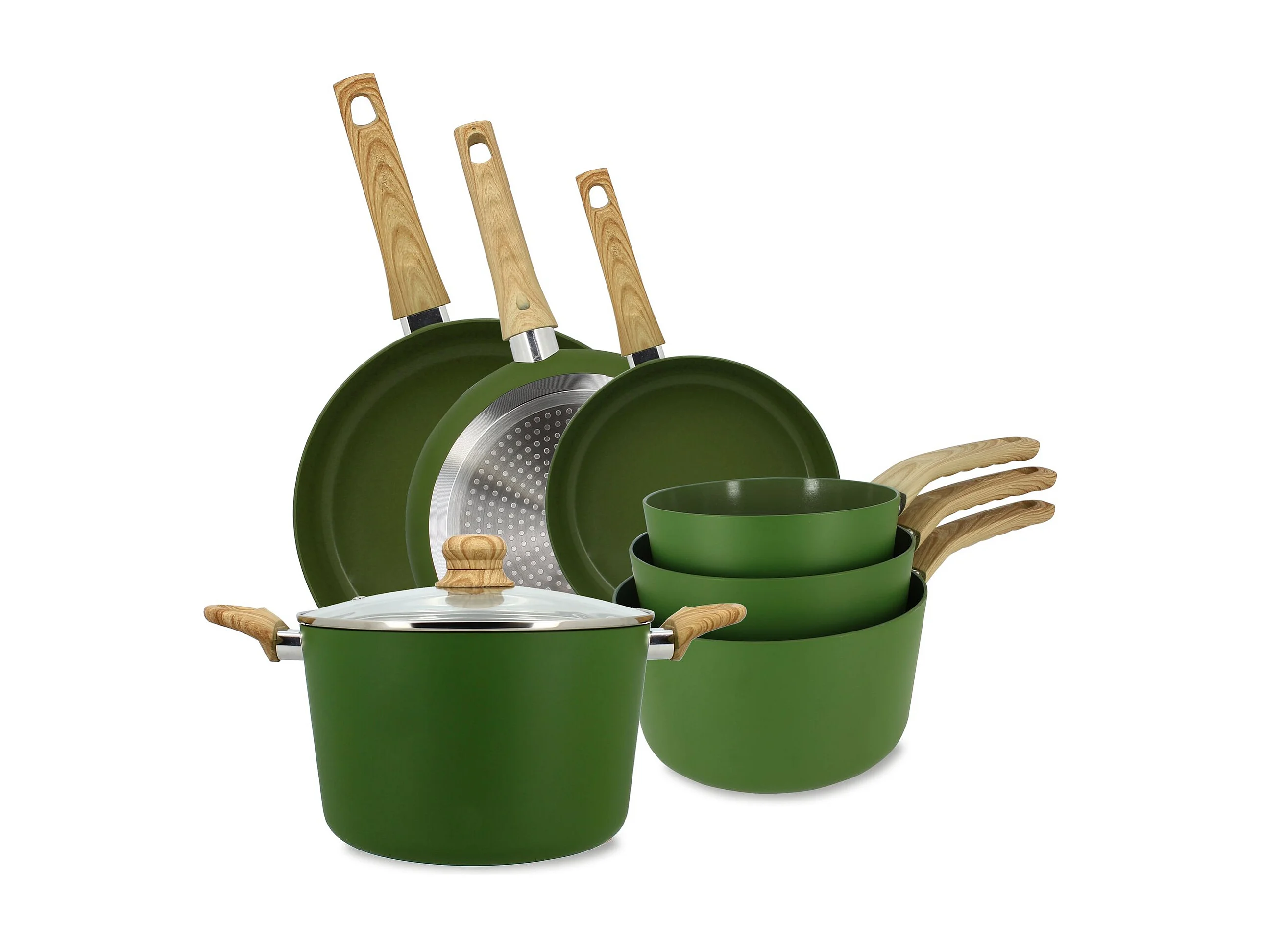Menastyl - Set 13 Pieces Cuisson Colorama Olive En Aluminium Induction