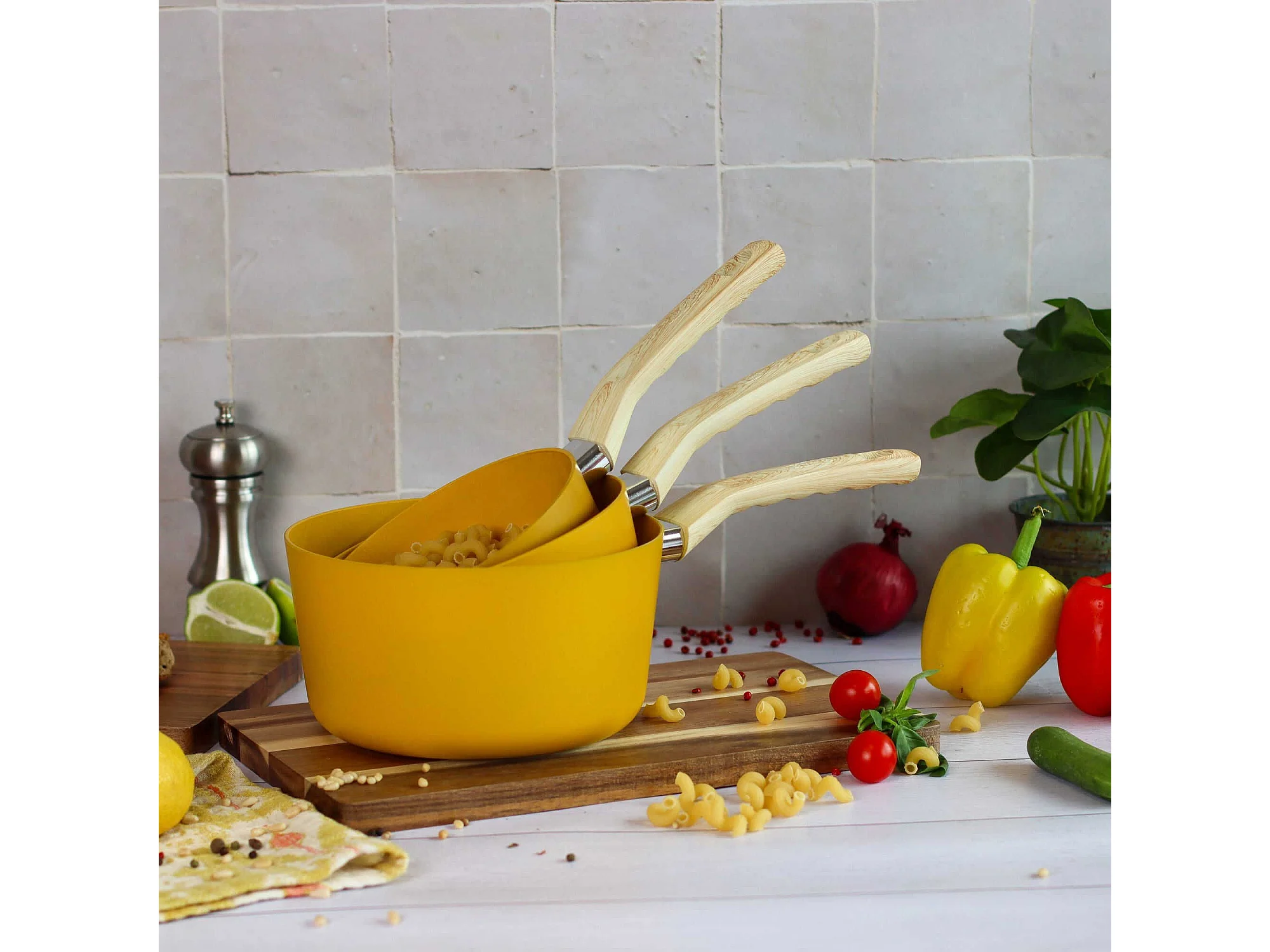 Menastyl - Set De 3 Casseroles Colorama Safran - Casserole 16/18 Et 20 Cm - En Aluminium - Revetement Antiadhesif En Ceramique