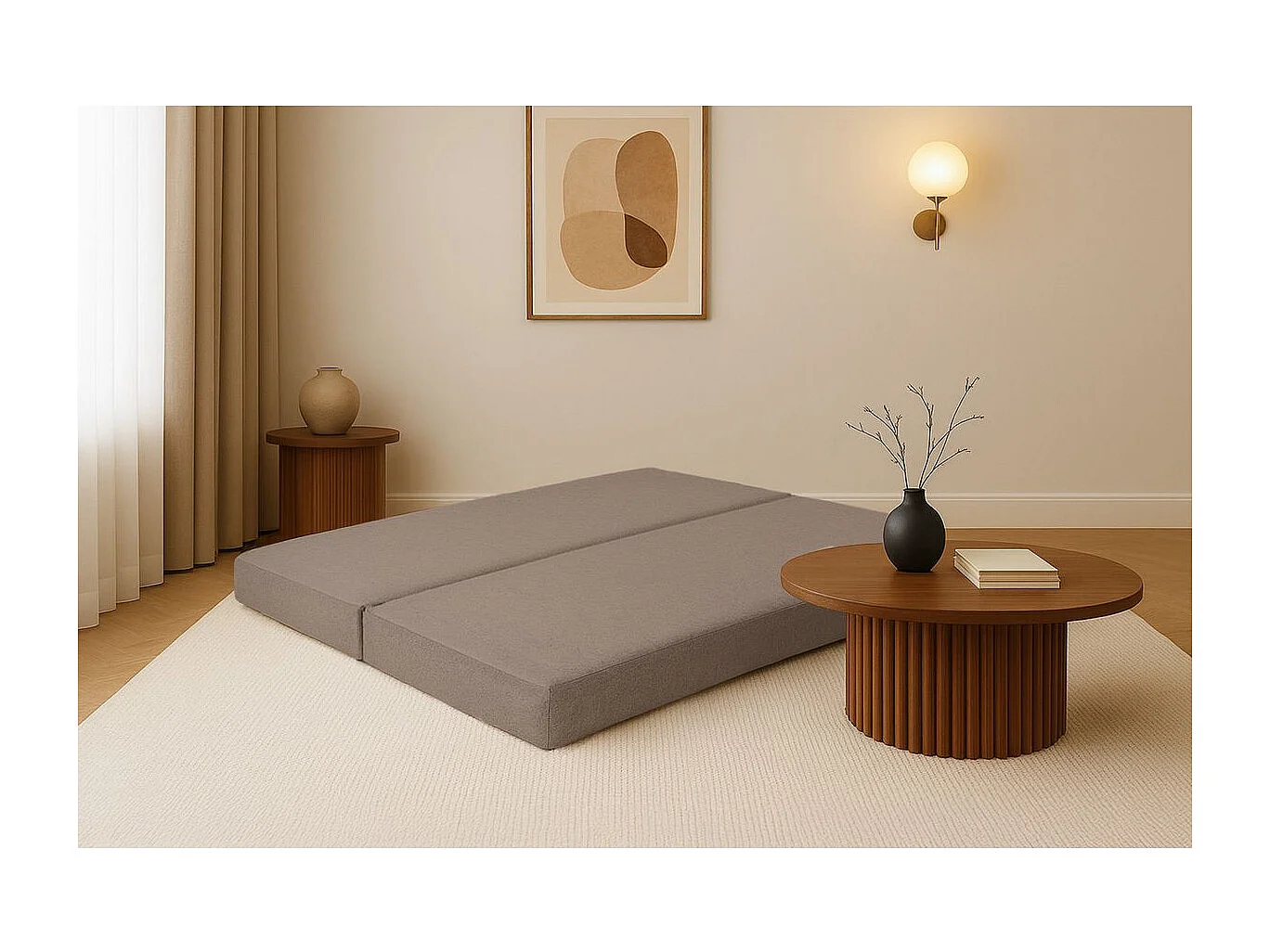 Méridienne modulable et convertible - Tissu lisse - Marron
