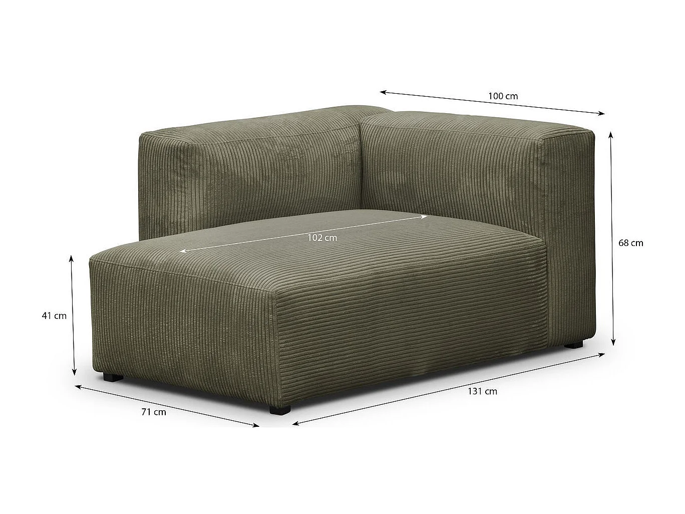 Méridienne d'angle à gauche modulable en velours côtelé vert kaki - Modulo