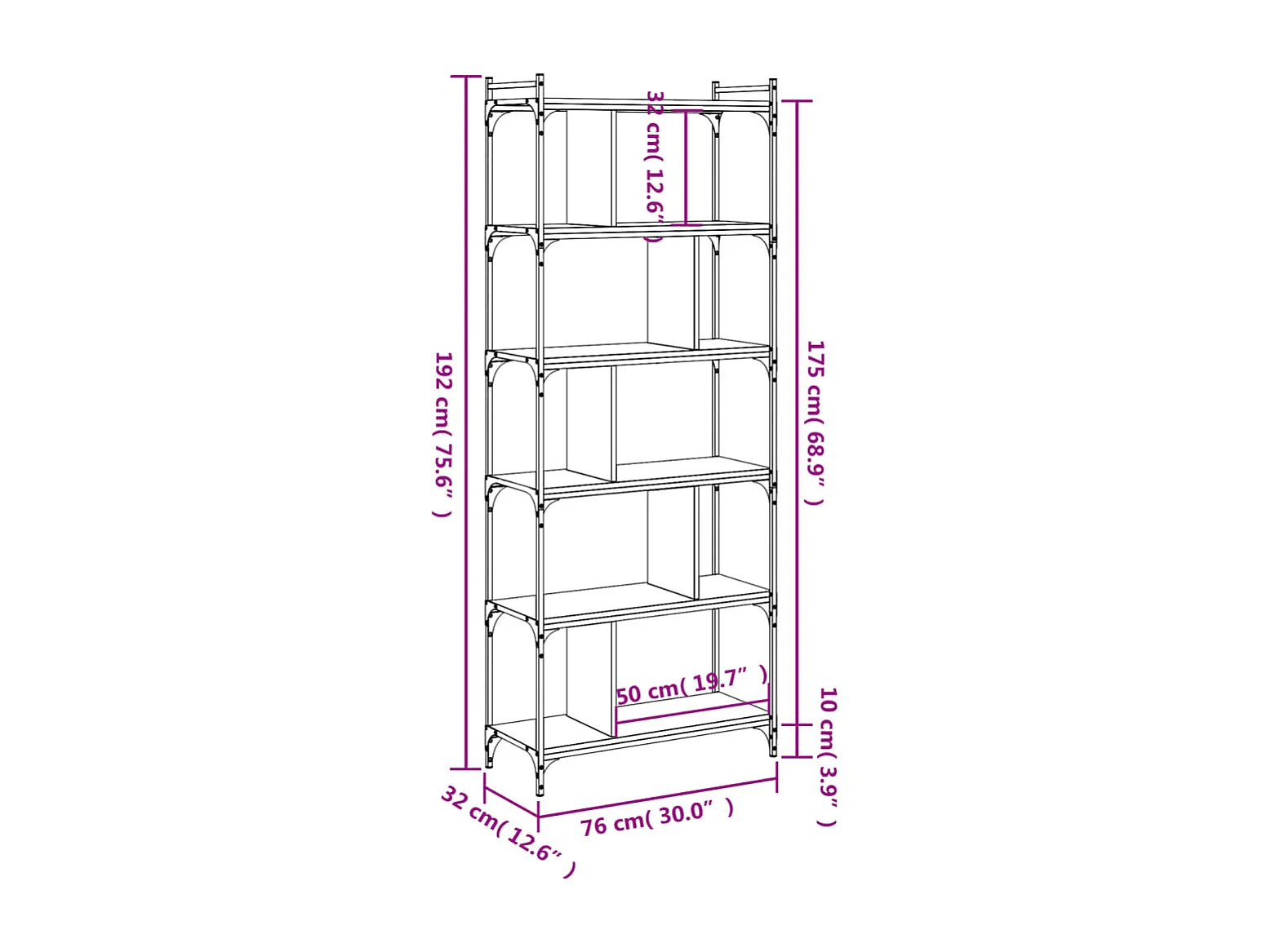 Merse Bibliothèque 6 niveaux chêne sonoma 76x32x192 cm
