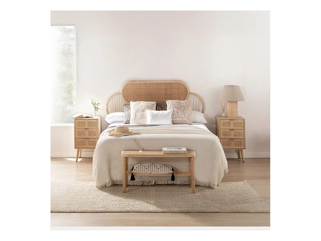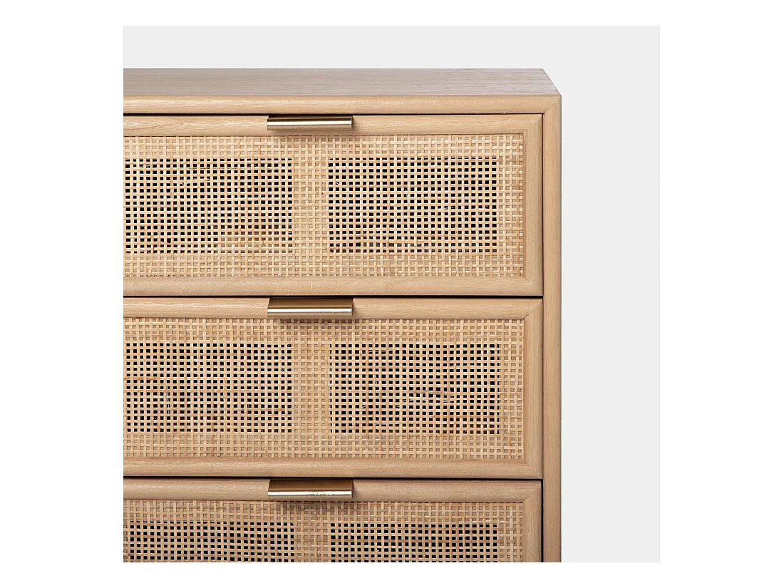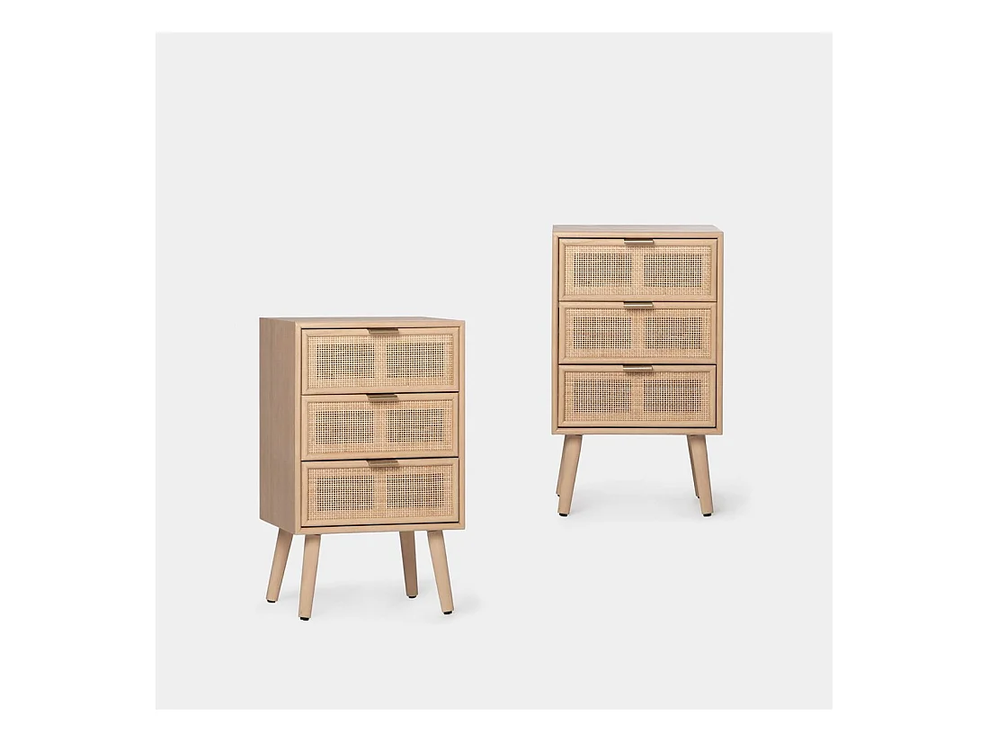 Table de chevet 3 tiroirs en rotin naturel 42x71 cm-Alis
