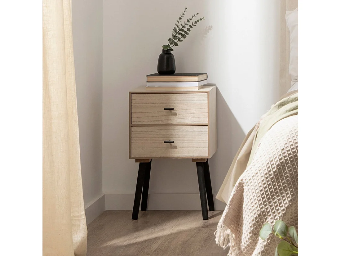 Table de chevet 1 tiroir en bois naturel 40x55 cm-Mina