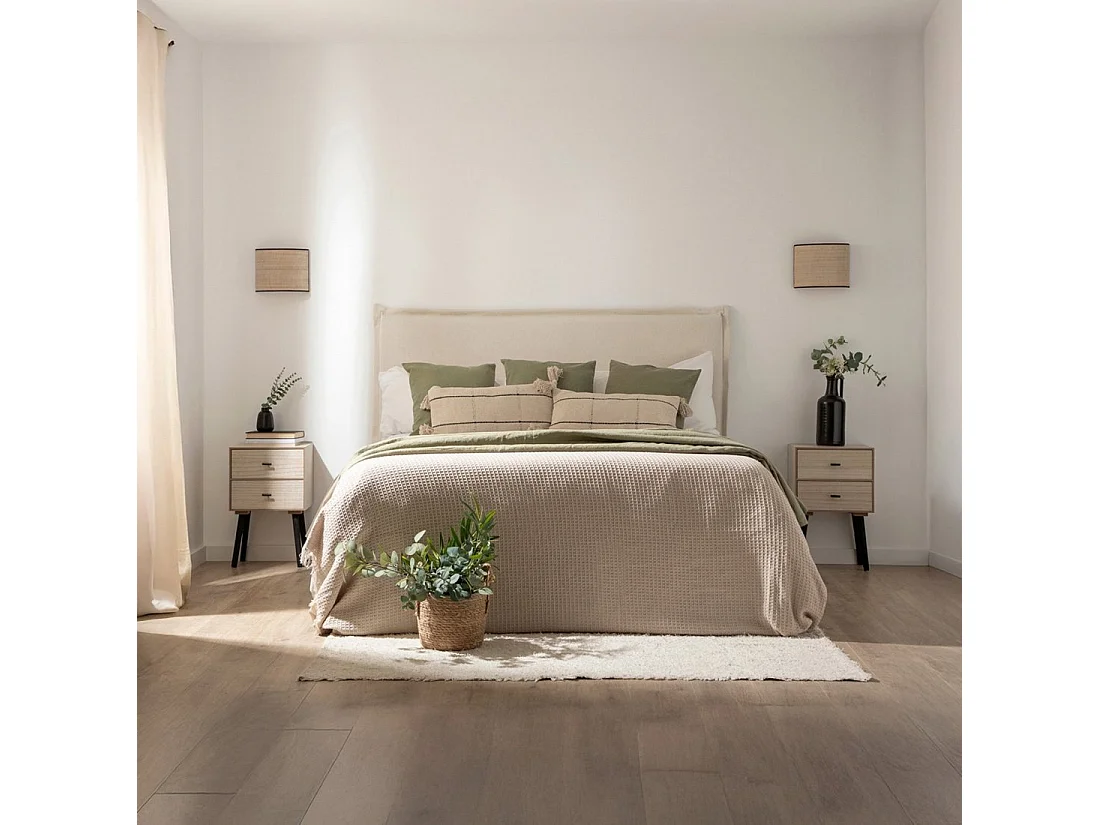 Table de chevet 2 tiroirs en rotin naturel 42x71 cm-Mapi