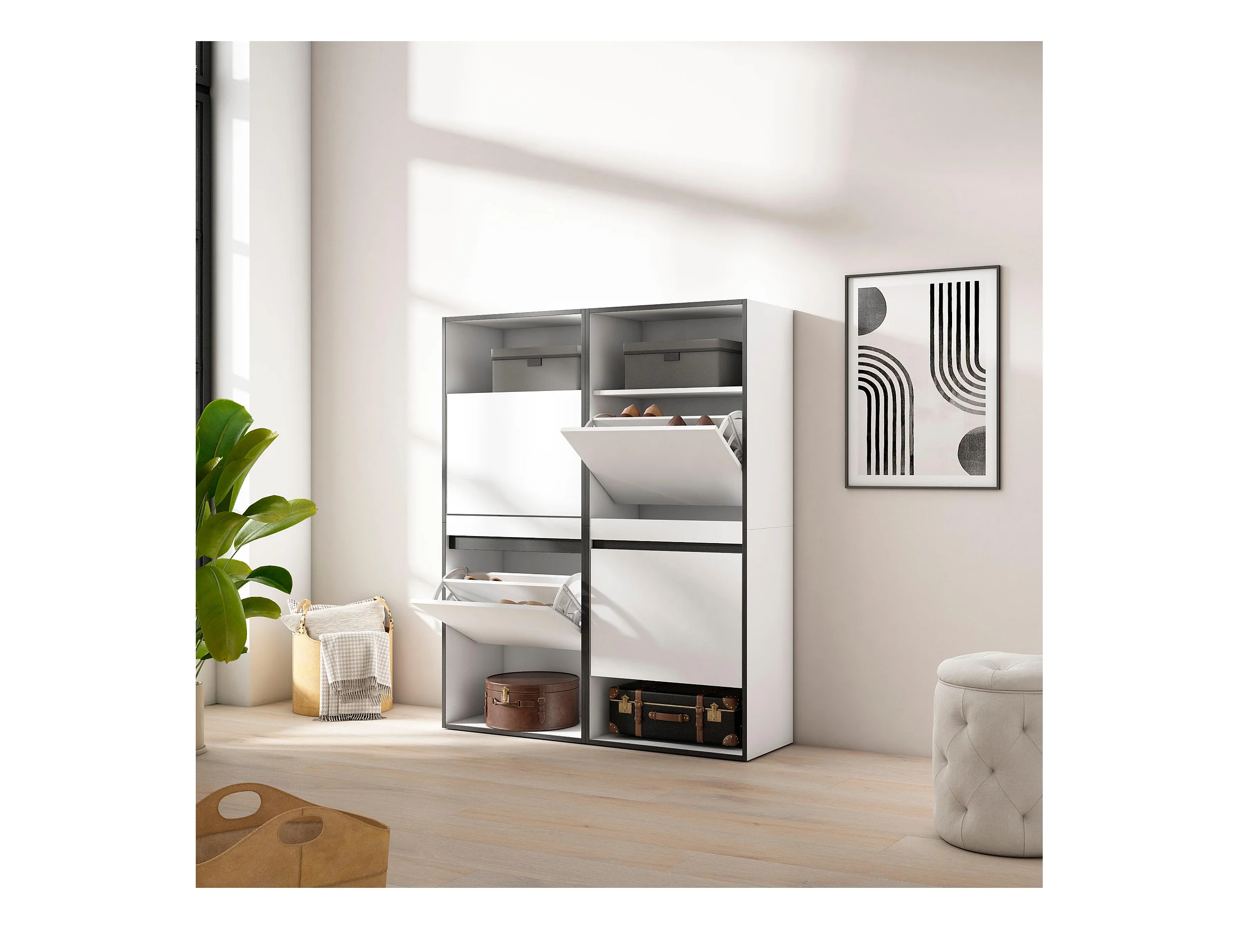 Meuble à Chaussures, 120x35x145 cm, Chambre à coucher, pièce, Armoire chaussures, Blanc