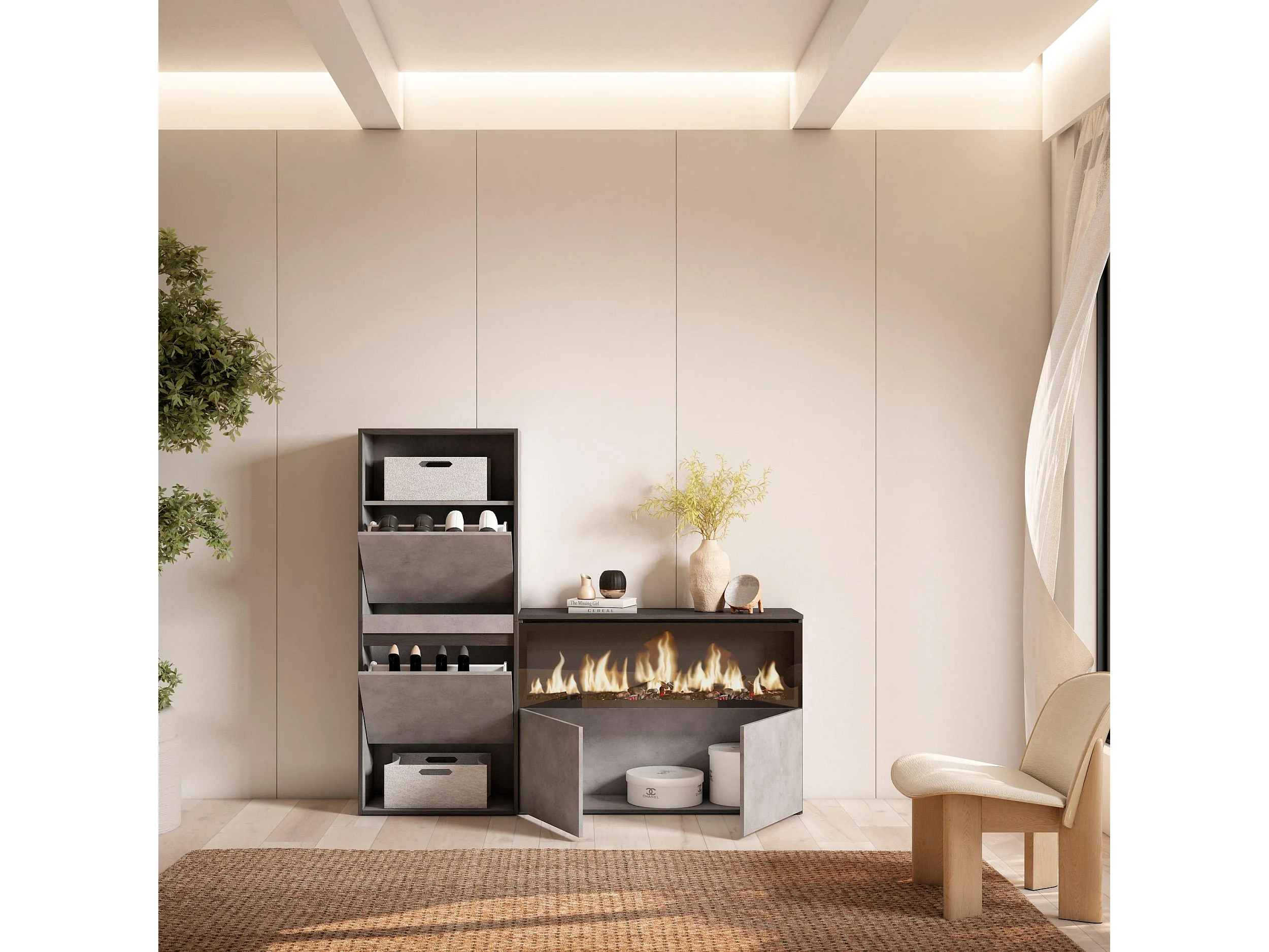 Meuble à Chaussures, 167x35x145 cm, Chambre à coucher, pièce, Cheminée électrique XXL, Ciment