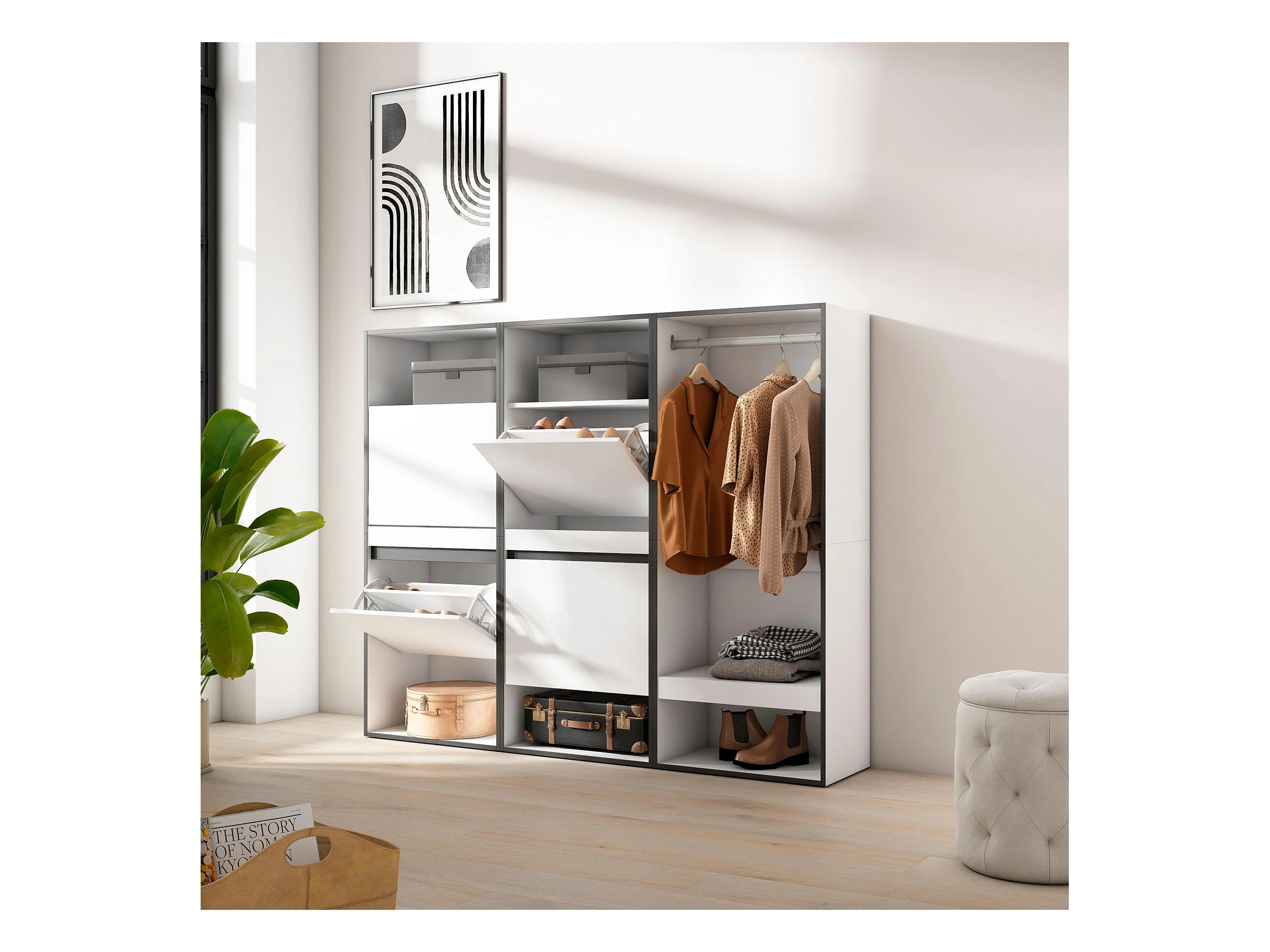 Meuble à Chaussures, 180x35x145 cm, Chambre à coucher, pièce, Vestiaire ouvert, Blanc