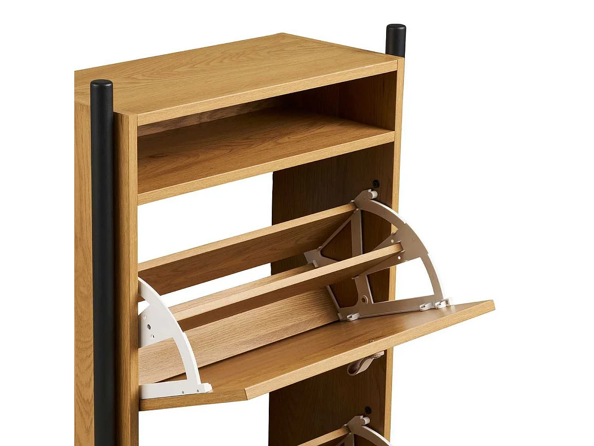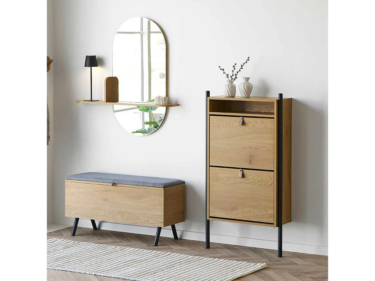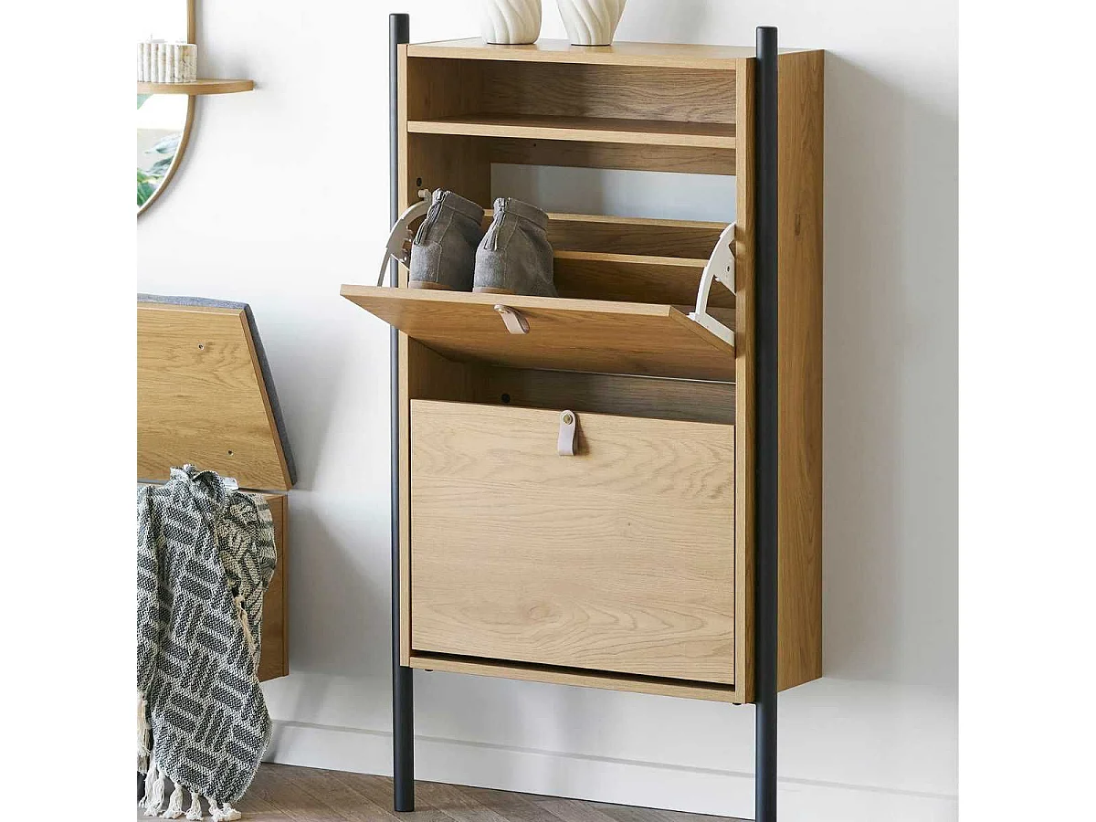Meuble à chaussures 2 portes basculantes en mélaminé aspect chêne clair - VALTIS