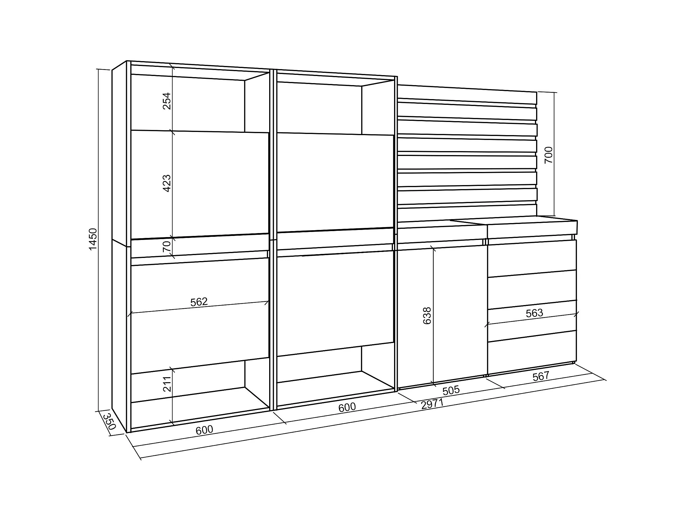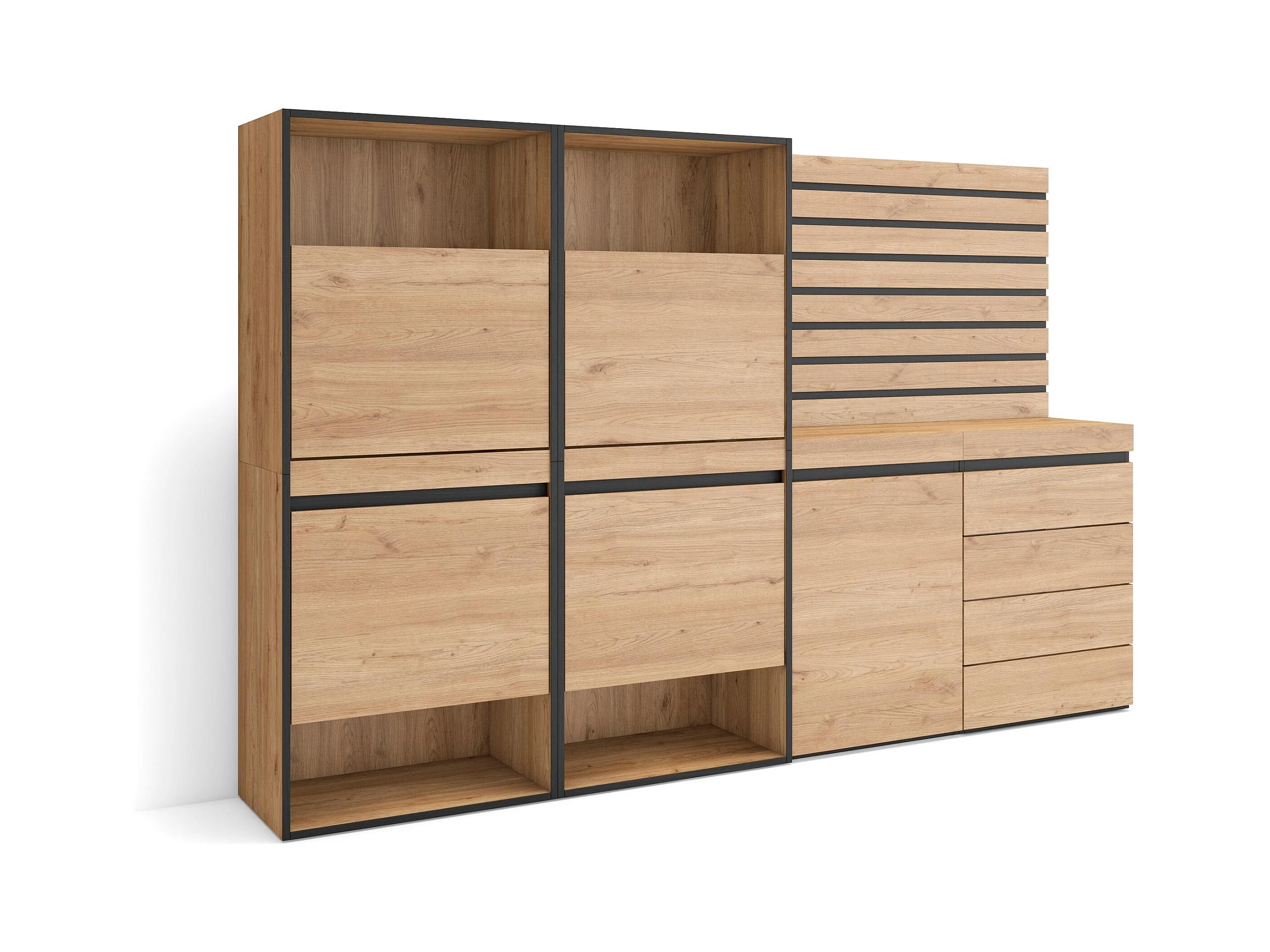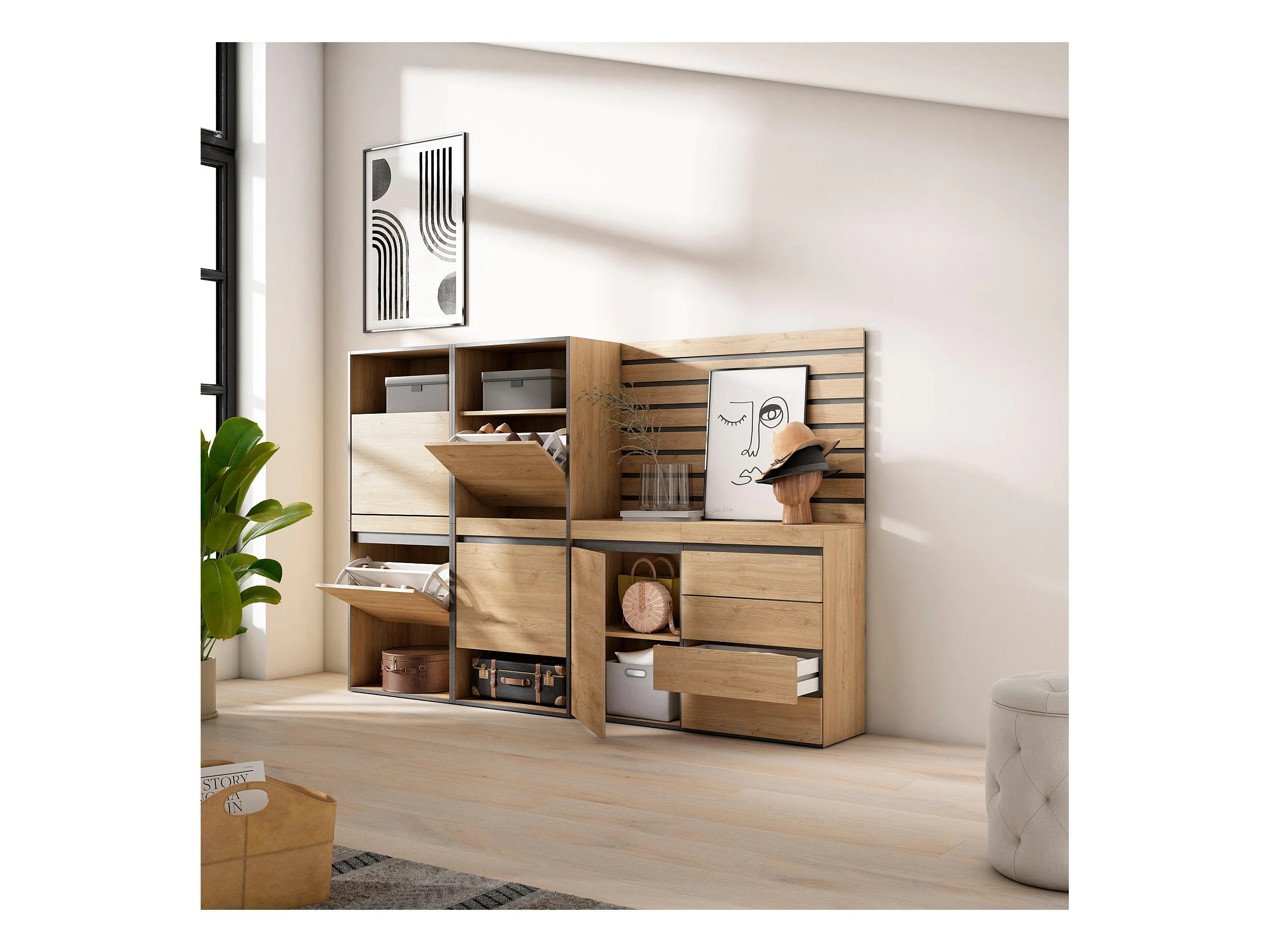Meuble à Chaussures, 227x35x145 cm, Chambre à coucher, pièce, Commode, Buffet, Panneaux Muraux en Bois, Chêne