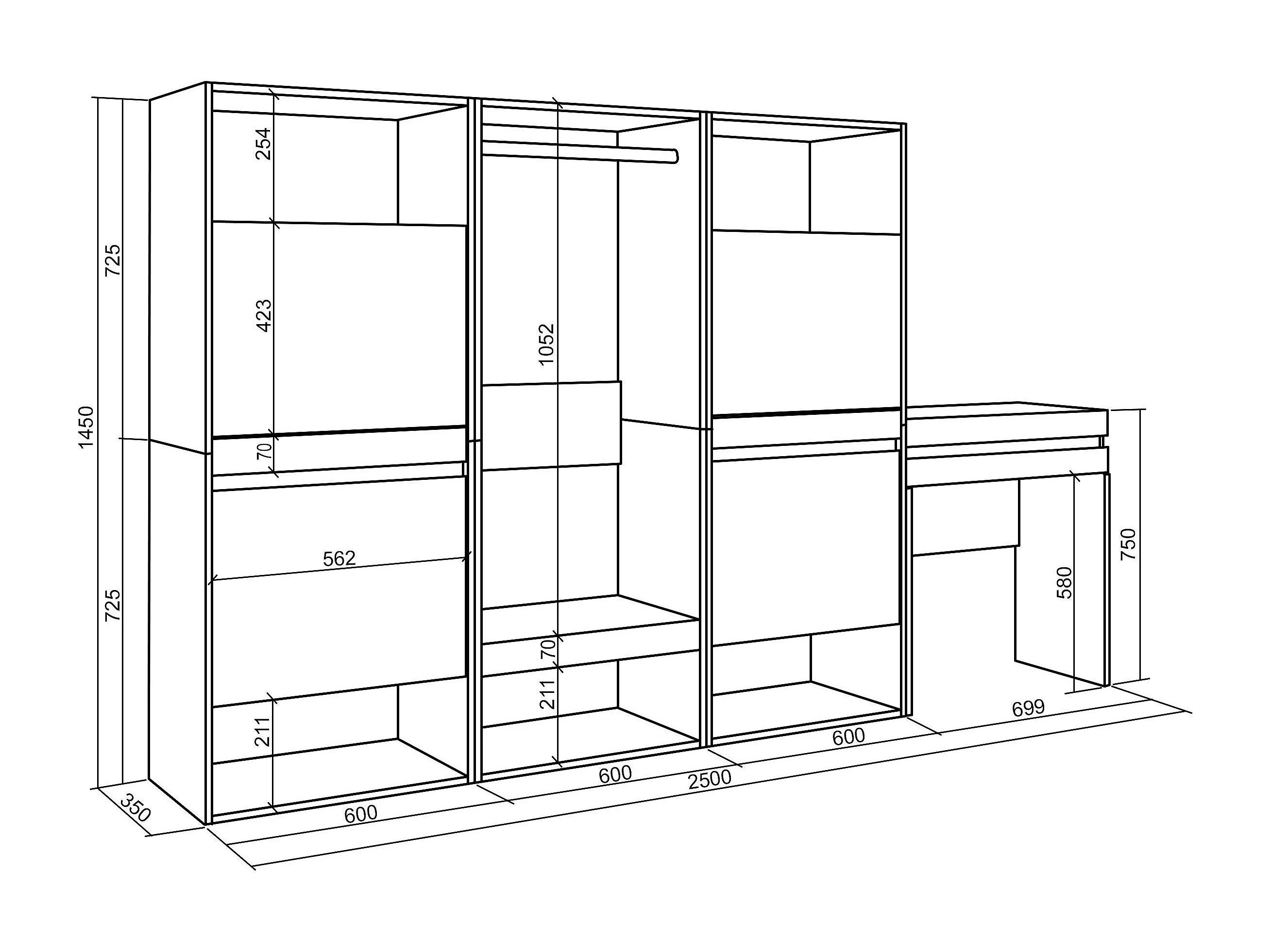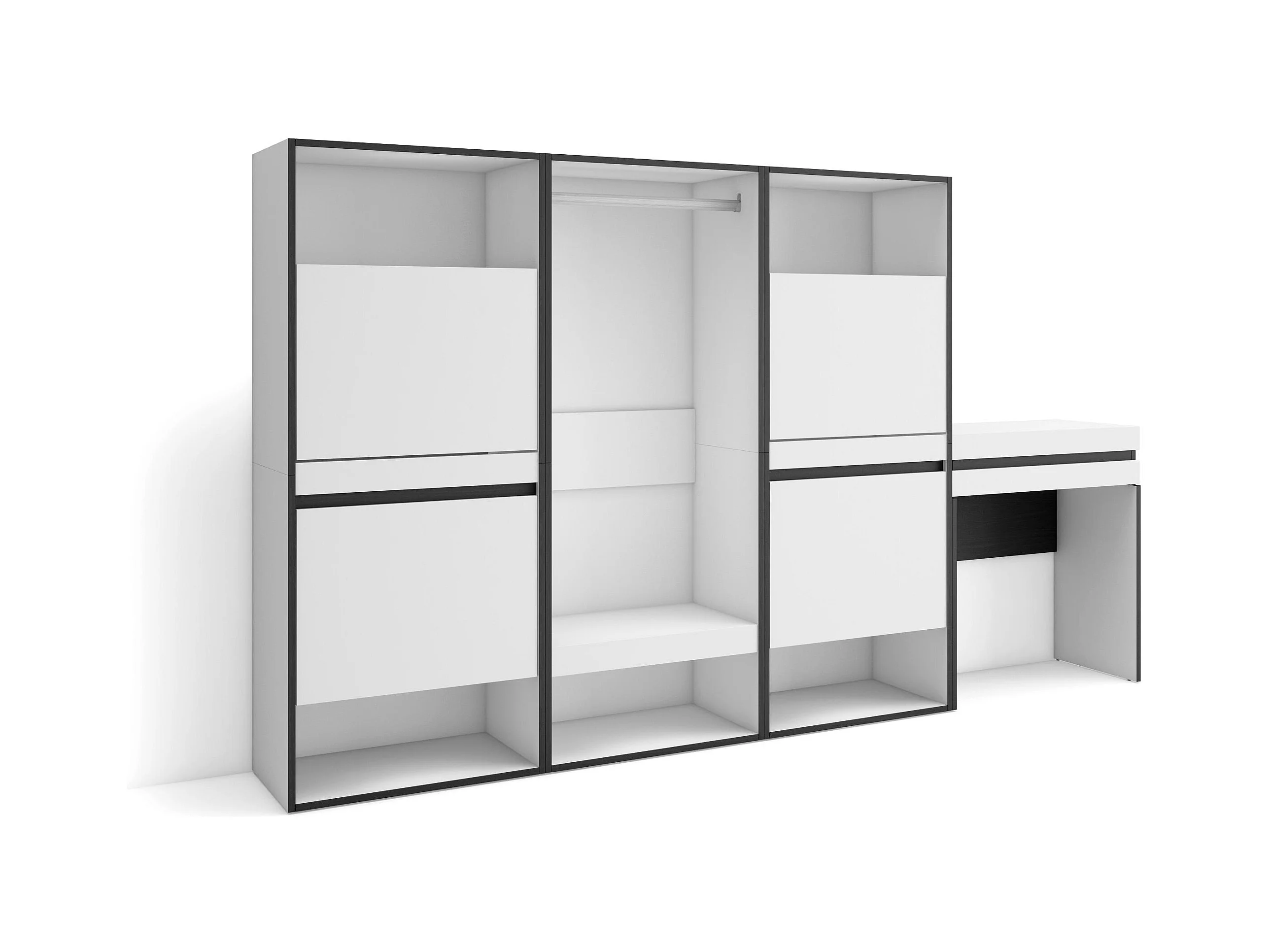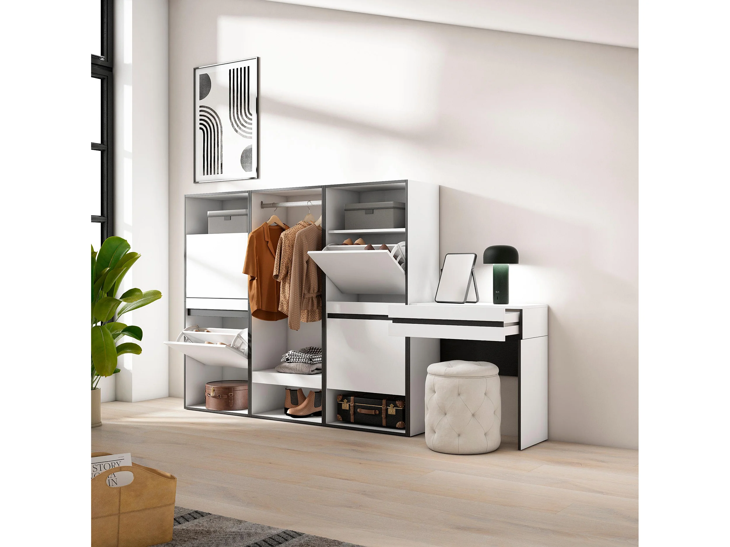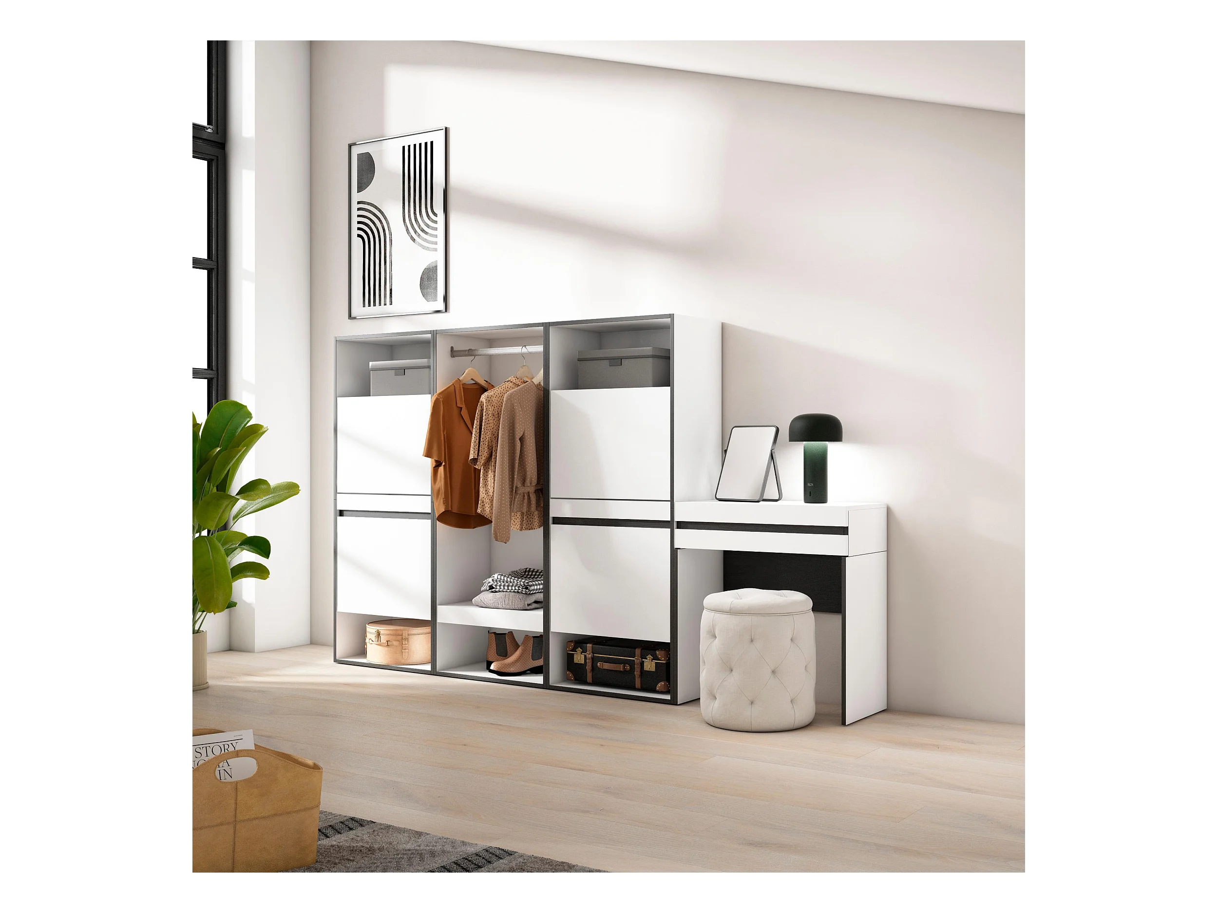 Meuble à Chaussures, 250x35x145 cm, Chambre à coucher, pièce, Vestiaire ouvert, Coiffeuse, Blanc