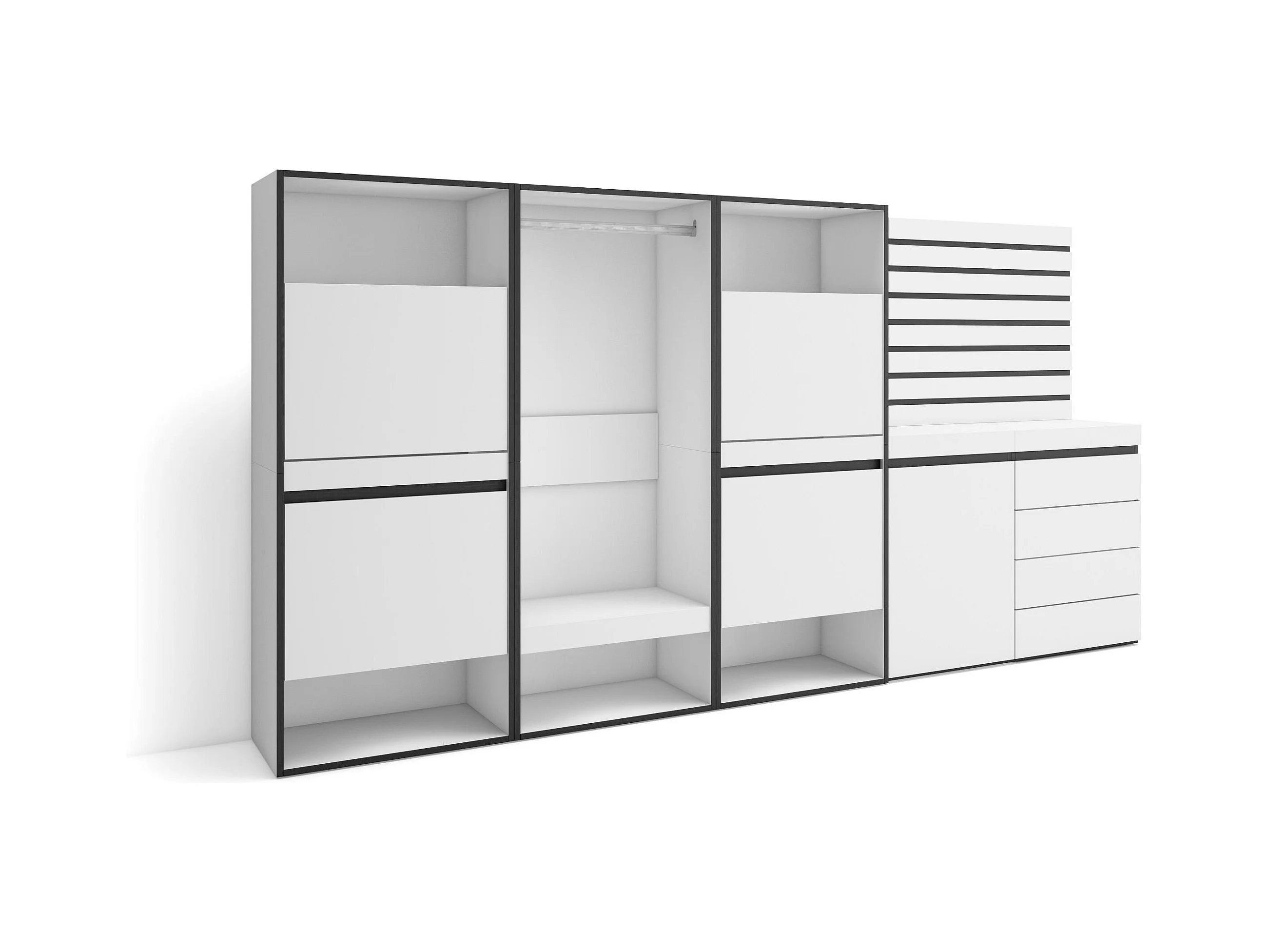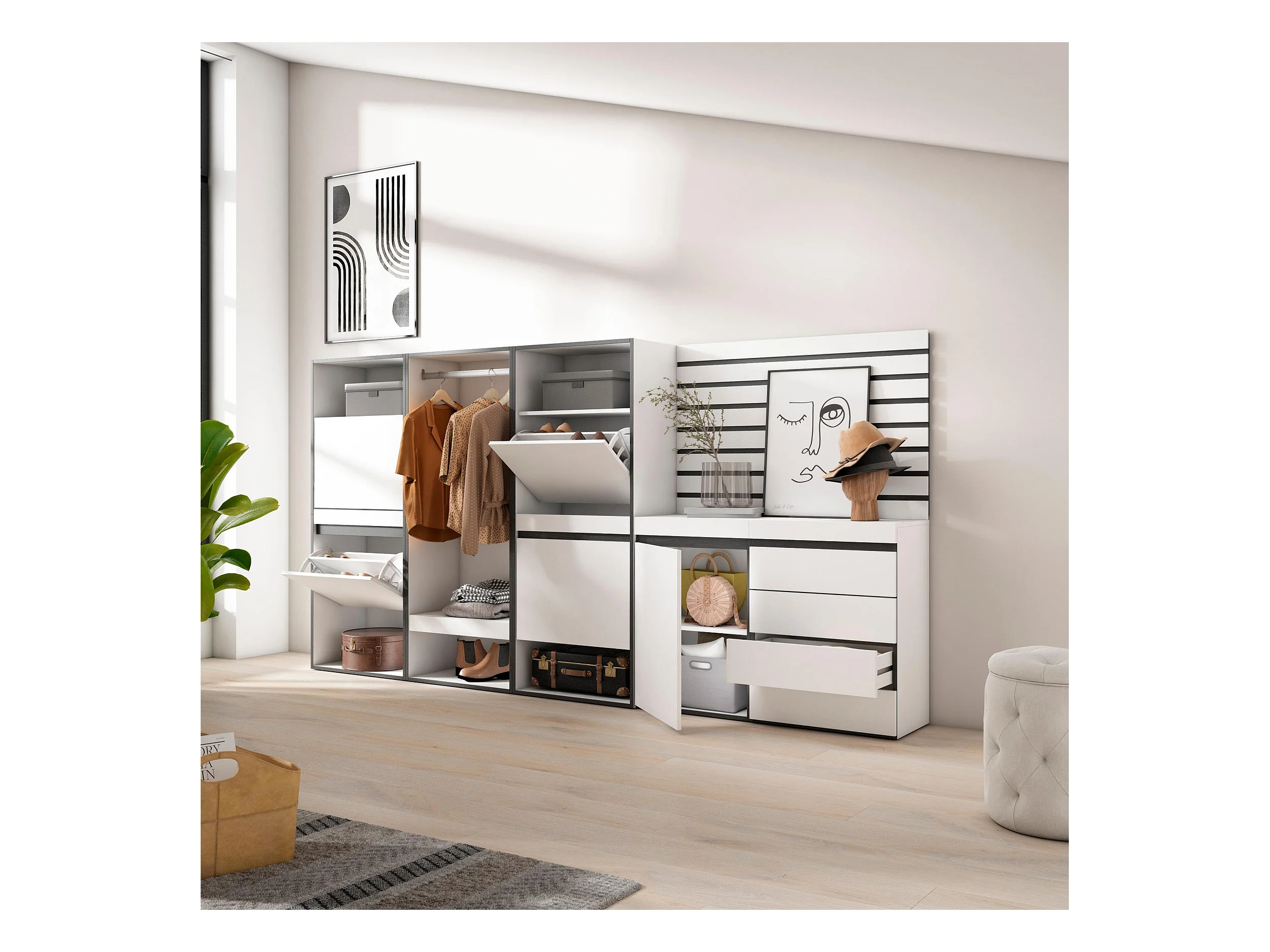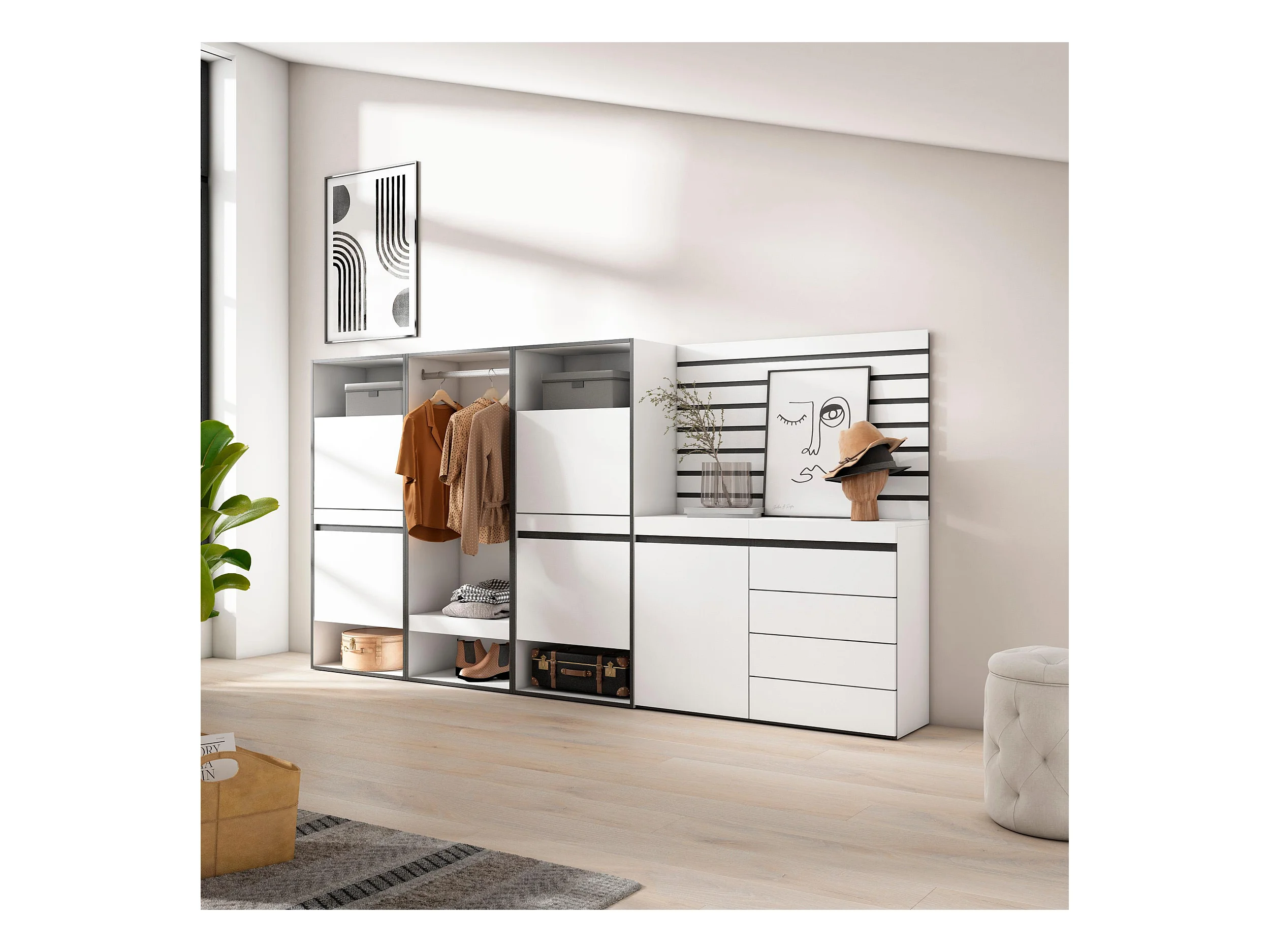 Meuble à Chaussures, 287x35x145 cm, Chambre à coucher, pièce, Vestiaire ouvert, Commode, Buffet, Panneaux Muraux en Bois, Blanc