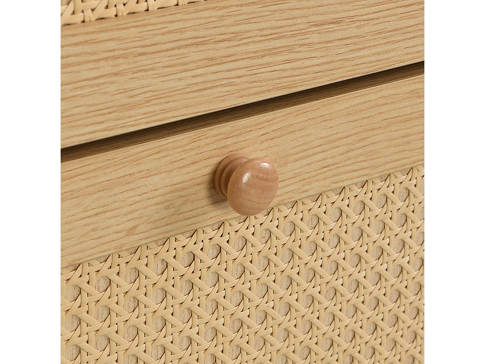 Meuble à chaussures 4 tiroirs rabattables naturel rotin poignées métal style maison campagne couloir chambre