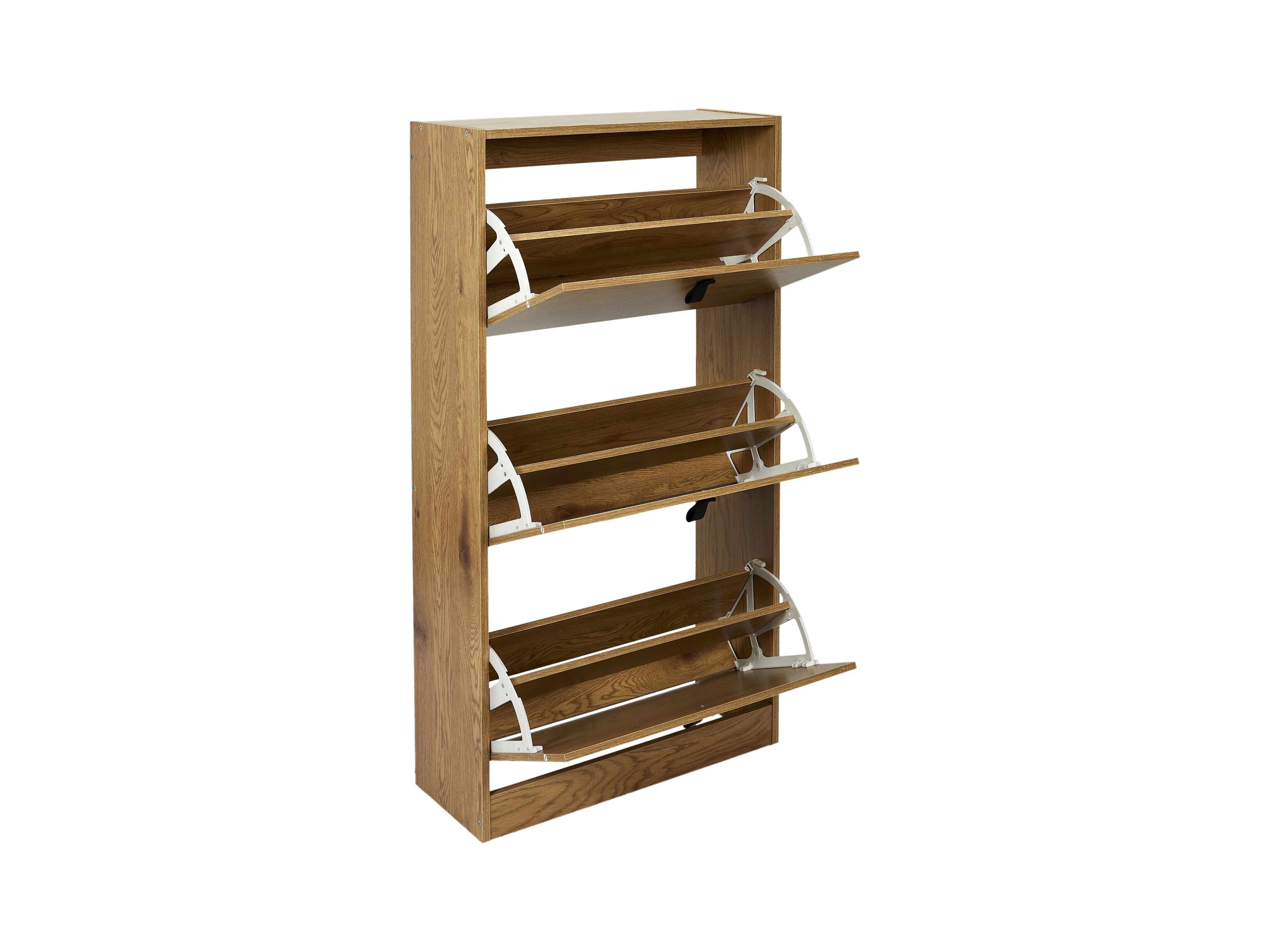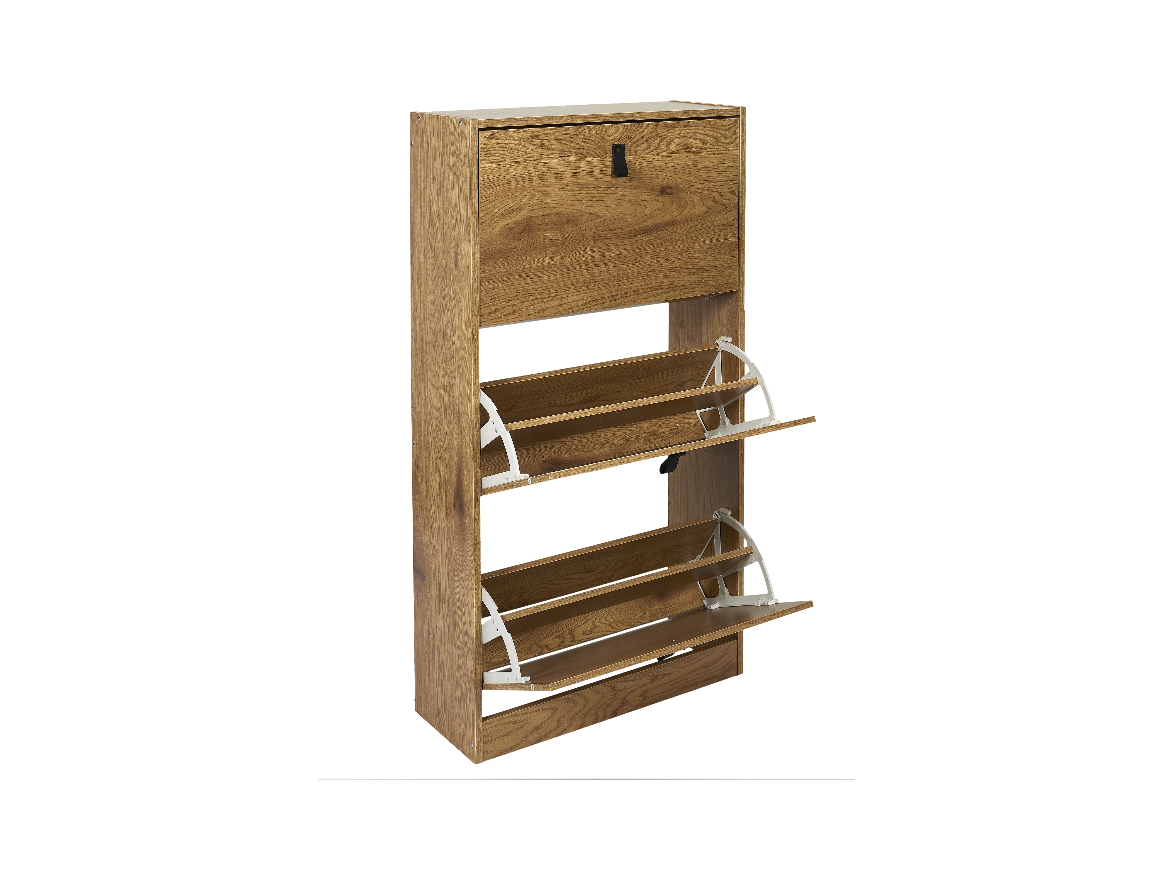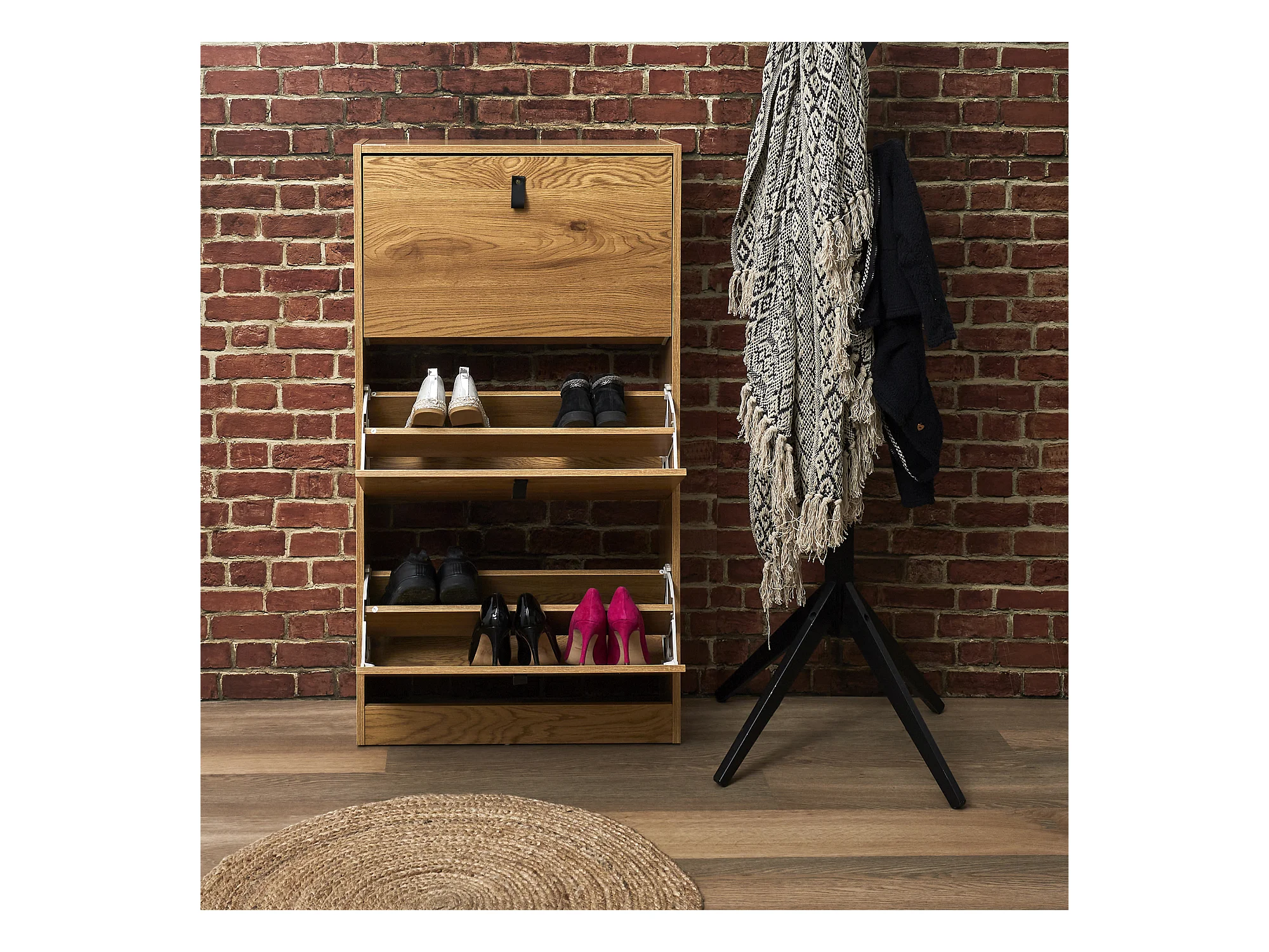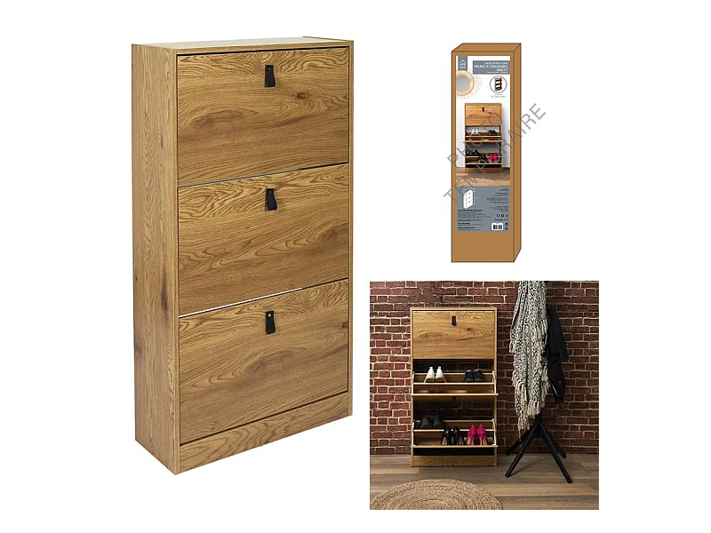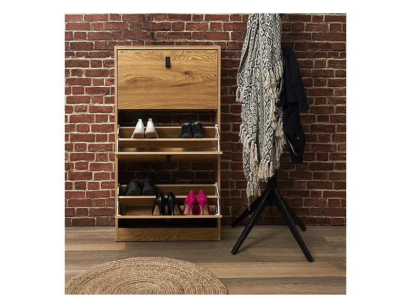 Meuble Chaussures Chêne 2 Abattants 1 Tiroir 24 Paires L 82.4 H 102.9 P 41 cm