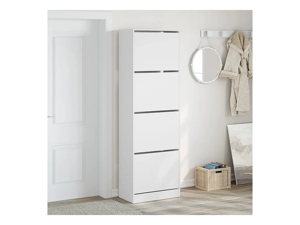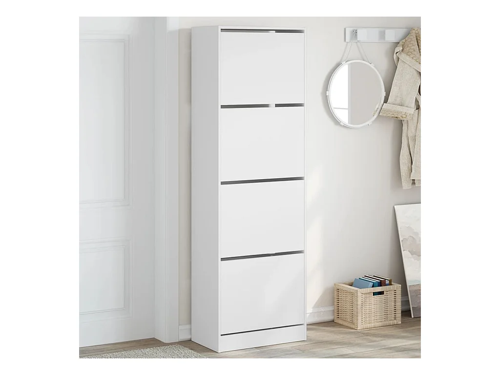 Meuble à chaussures 4 tiroirs rabattables blanc 60x34x187,5 cm FR76893