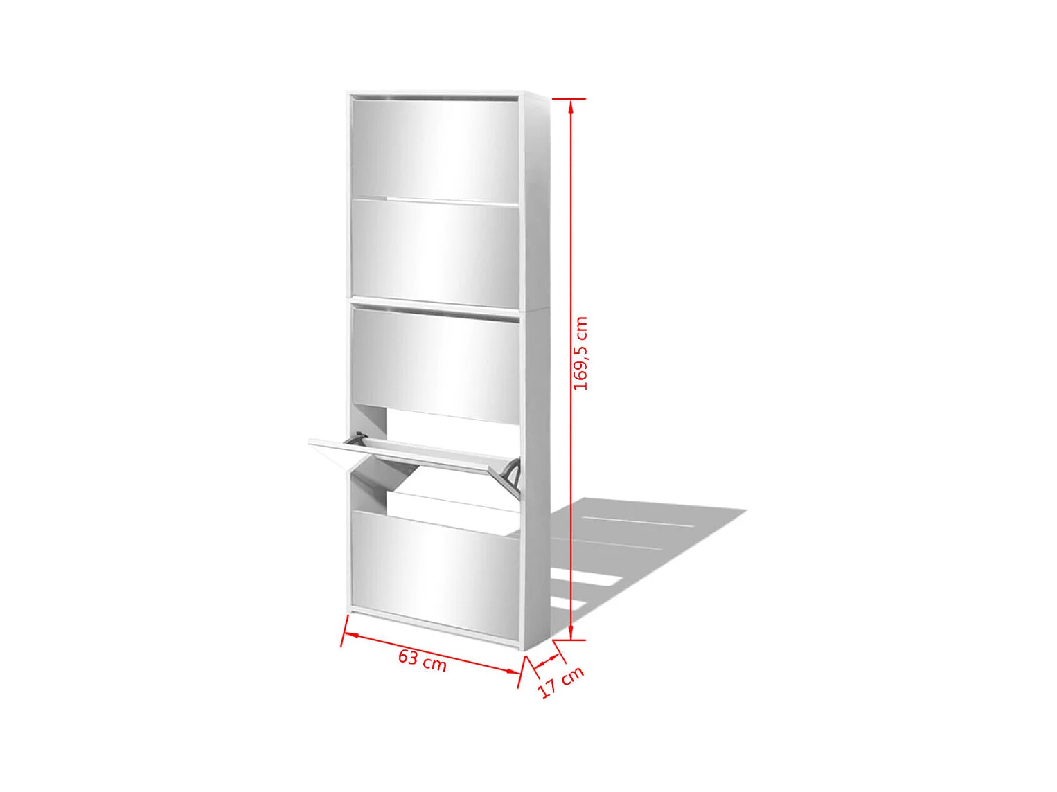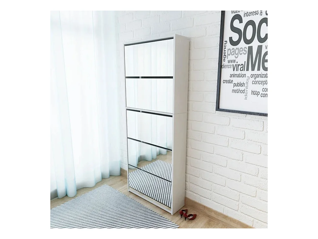 Meuble à chaussures 5 étagères et miroir 63x17x169,5 cm Blanc