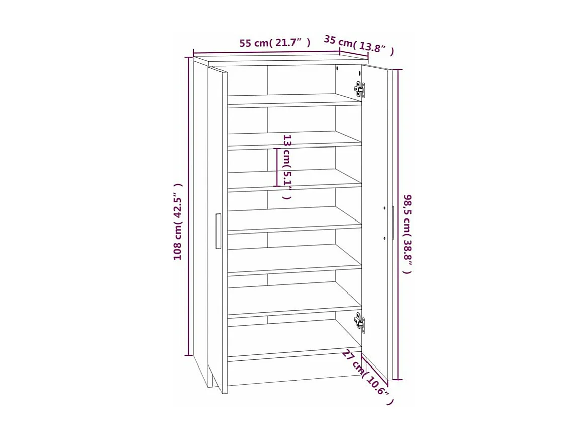 Meuble à chaussures 7 niveaux Palina L55xH108xP35 – Élégance et fonctionnalité-Couleur Noir