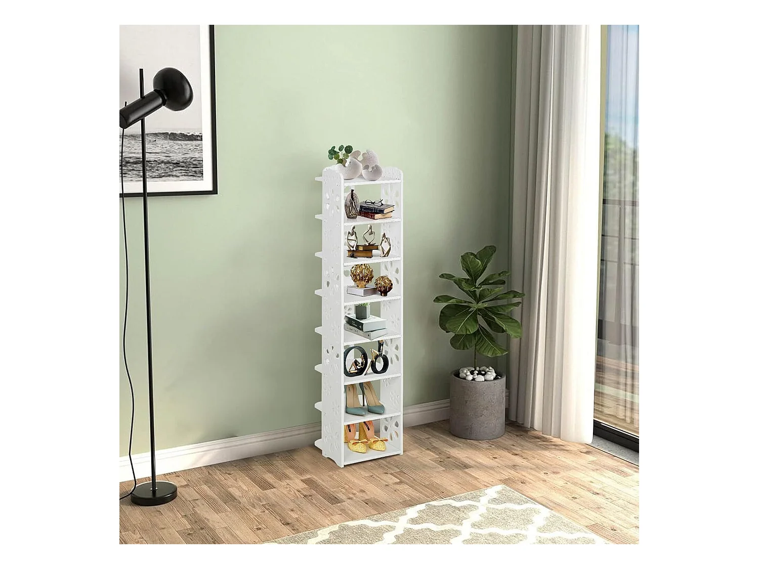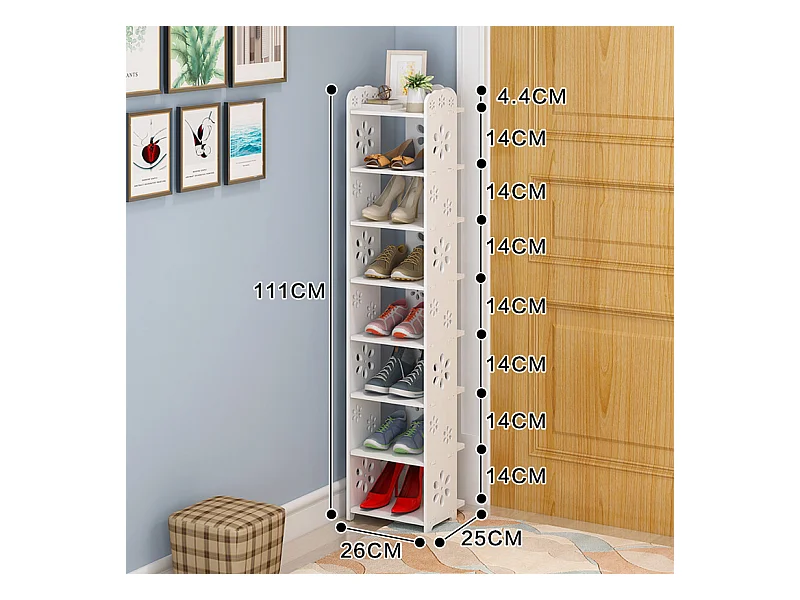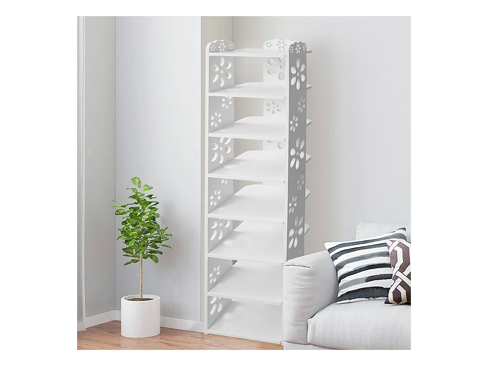 Meuble à Chaussures 8 Niveaux en Bois Plastique,Étagère de Rangement à Chaussures,26x25x111CM,Blanc