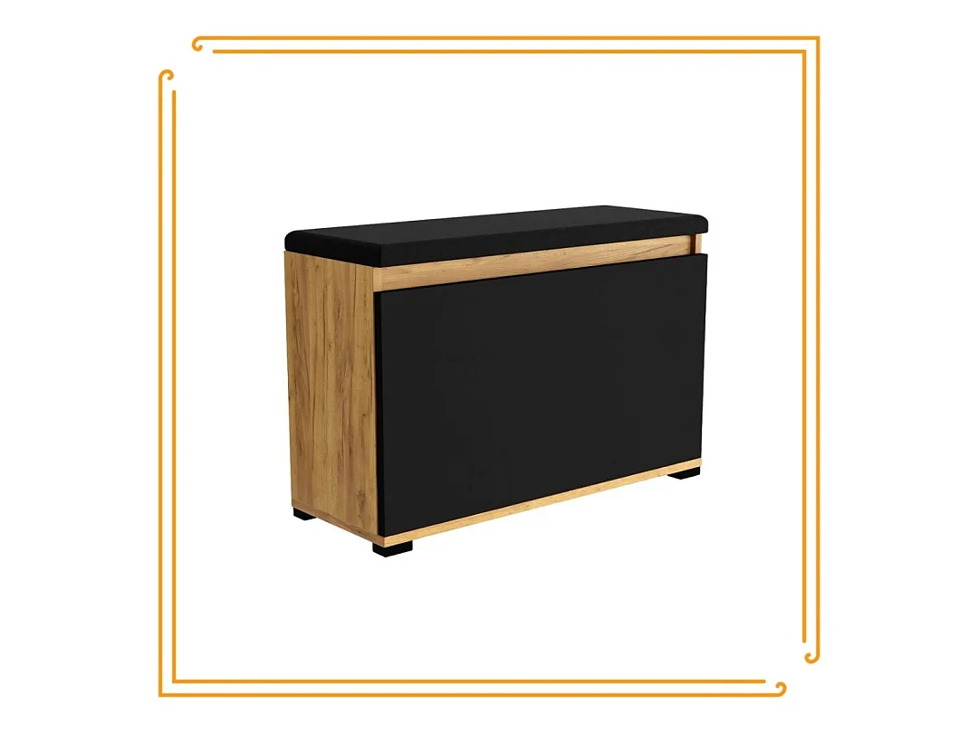 Meuble à chaussures 80 cm avec rangement, assise rembourrée, étagère – Chêne noir