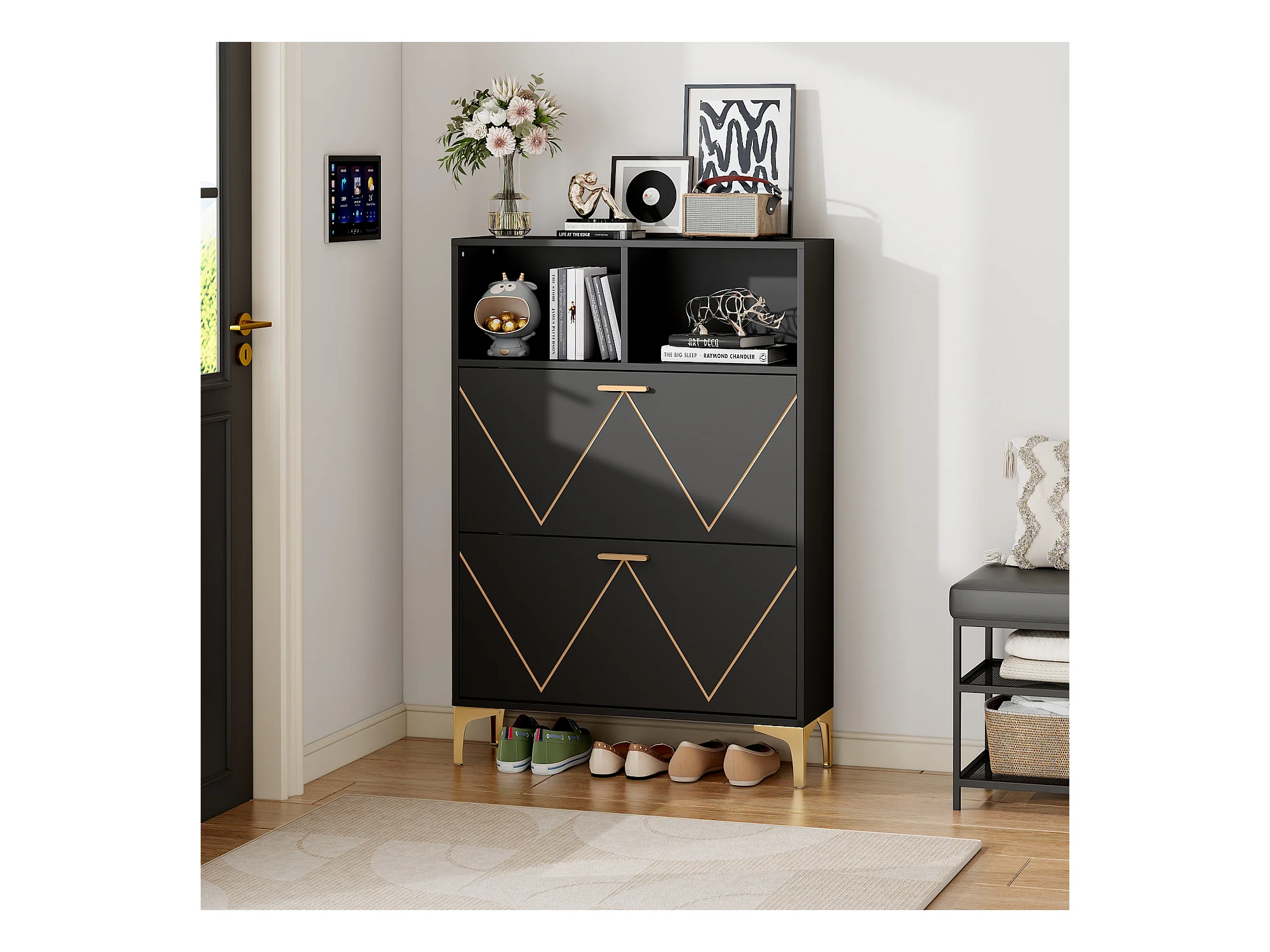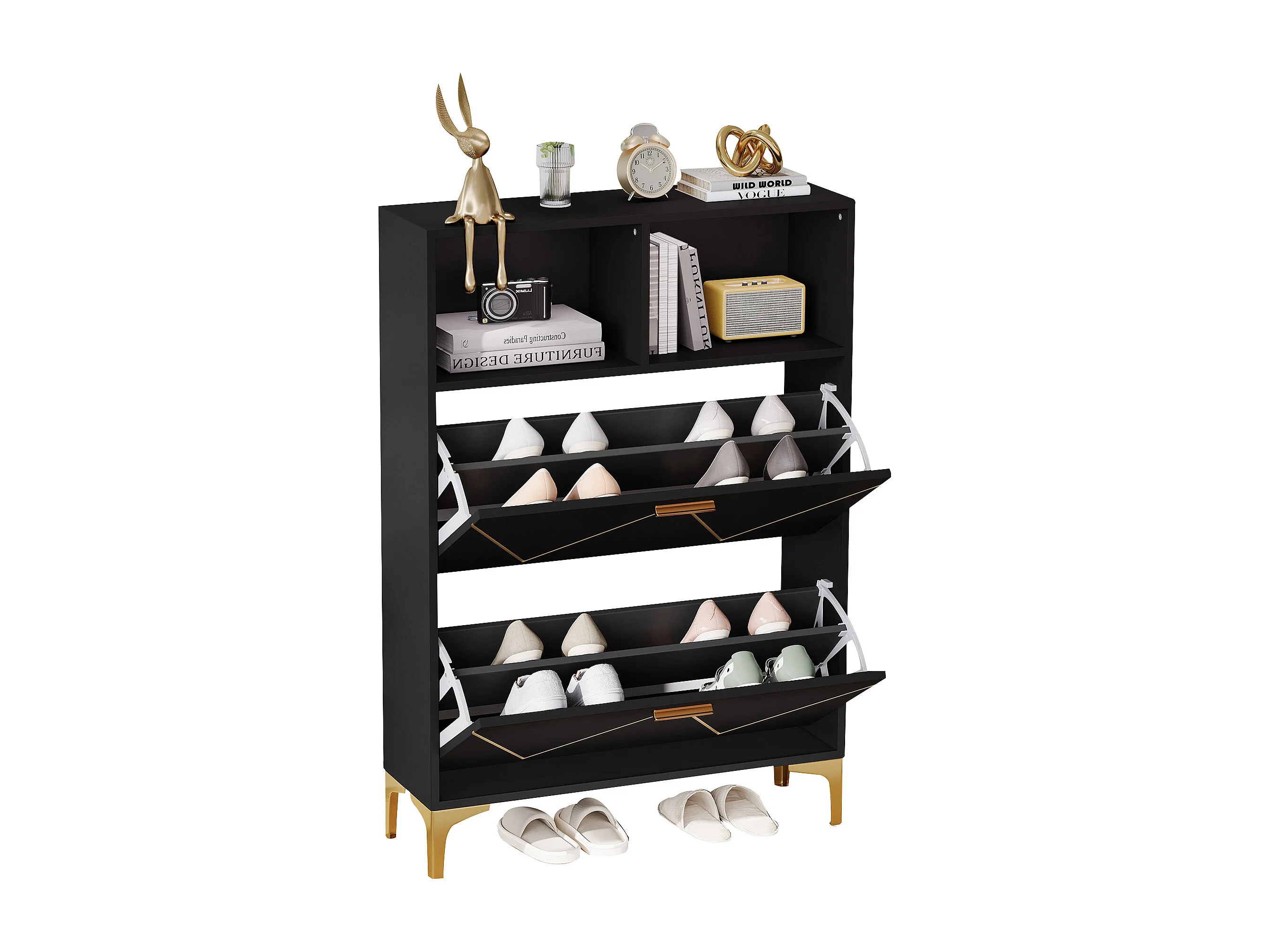 Meuble à chaussures moderne - 4 compartiments abattants - Noir