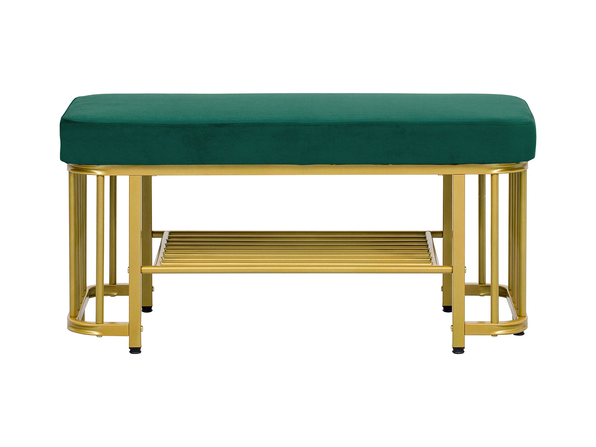 Banc de rangement rembourré, design moderne, polyester et métal, vert, avec coffre intégré (100x40x42cm)