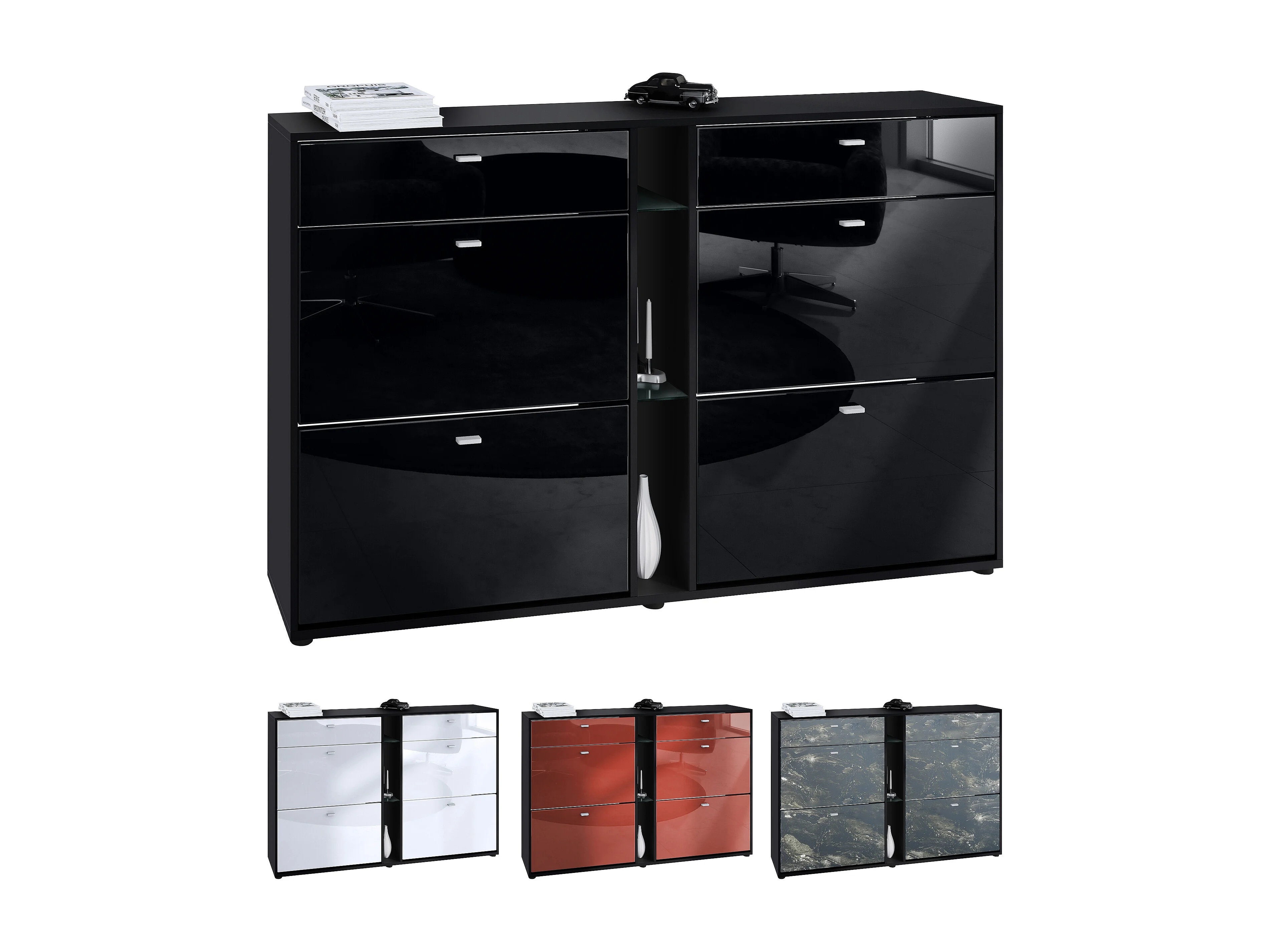 Meuble à chaussures à bascule Today 155,5 x 95 x 28 cm, avec un éclairage LED bleu, corps en Noir mat, façades en gris haute brillance