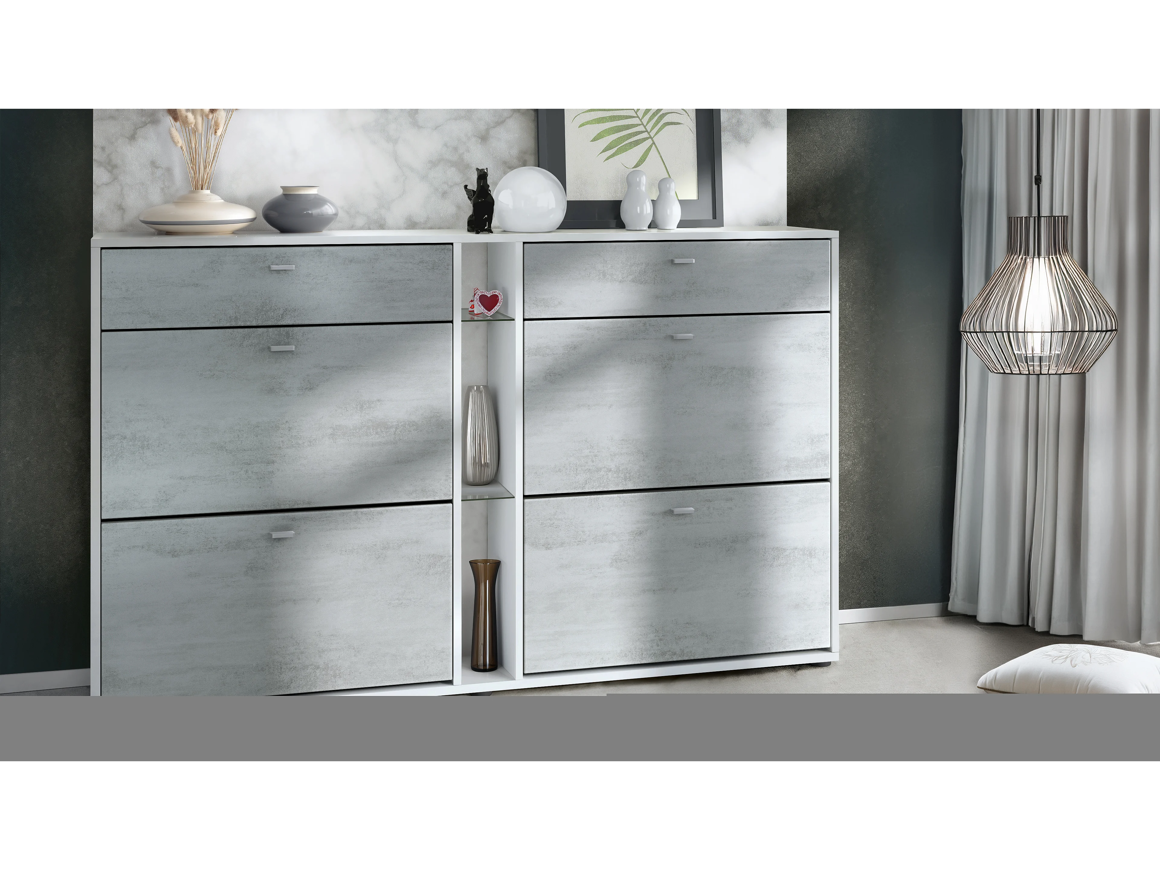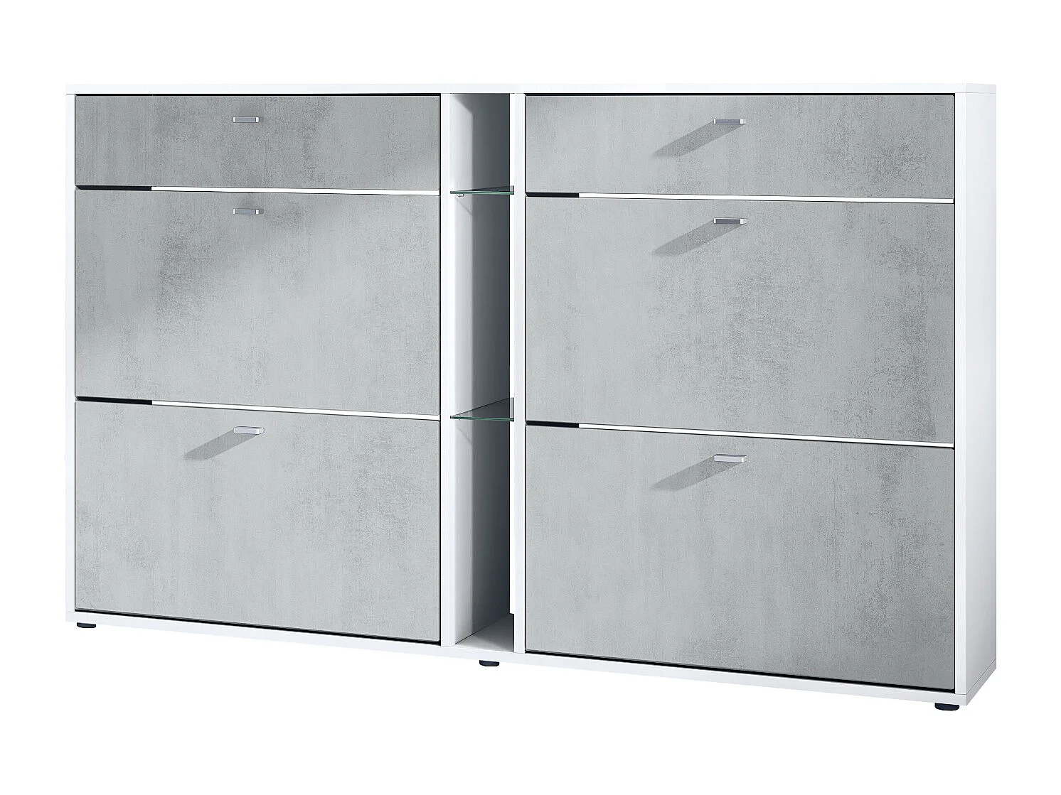 Meuble à chaussures à bascule Today 155,5 x 95 x 28 cm, corps en Blanc mat, façades en aspect béton oxyde