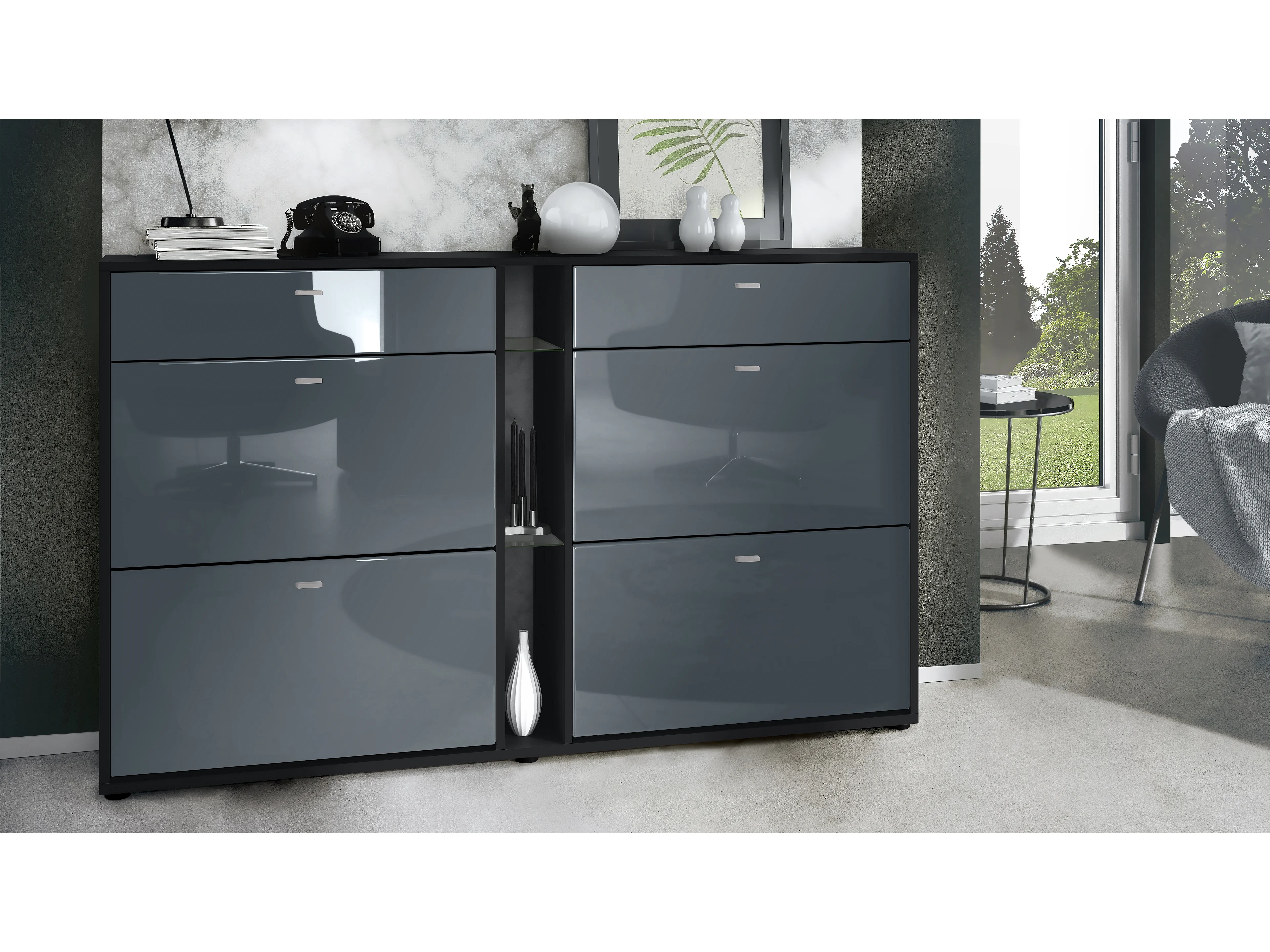 Meuble à chaussures à bascule Today 155,5 x 95 x 28 cm, corps en Noir mat, façades en gris haute brillance