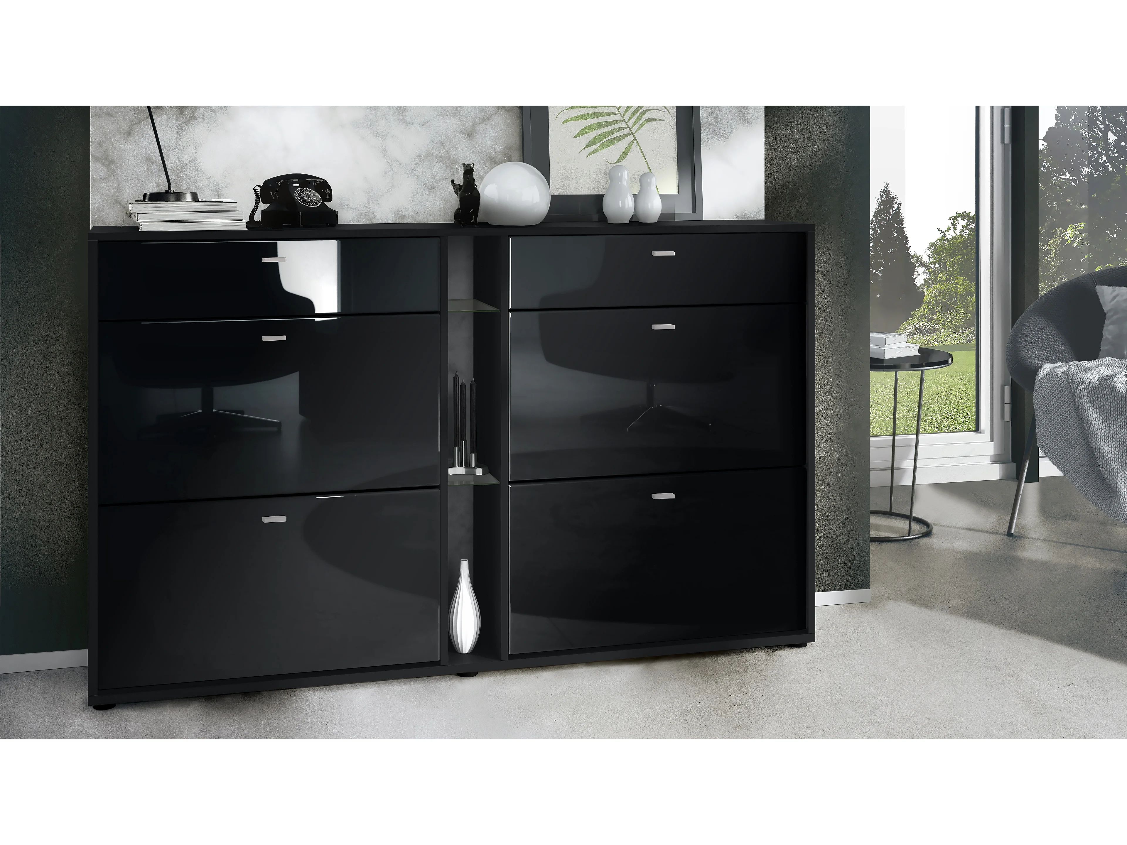 Meuble à chaussures à bascule Today 155,5 x 95 x 28 cm, corps en Noir mat, façades en noir haute brillance