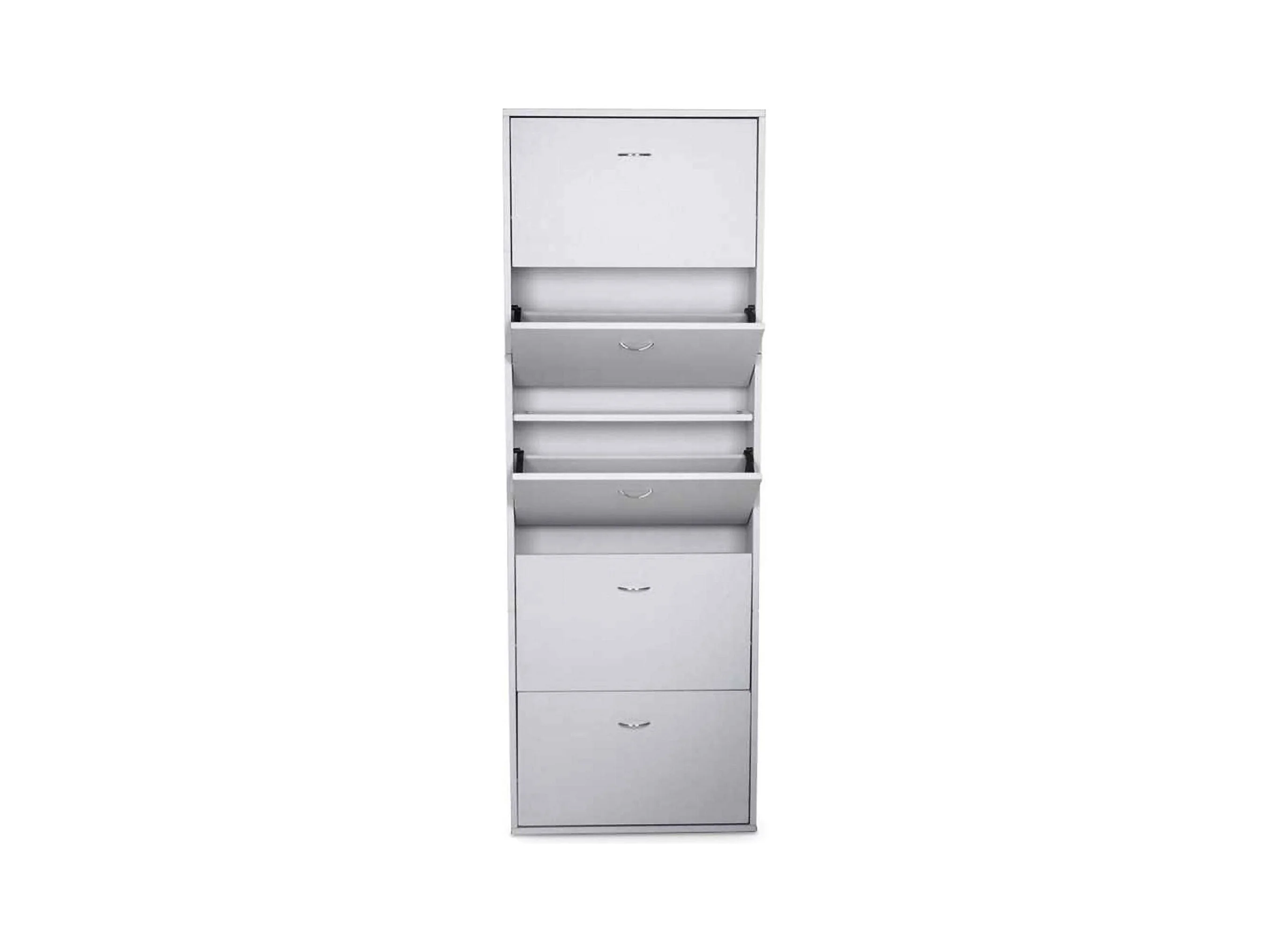 Scarpiera Rosa, Mobile multiuso da ingresso con 4 ante a ribalta, Armadietto portascarpe a doppia profondit, 100% Made in Italy, 67x28h147 cm, Bianco e Cemento