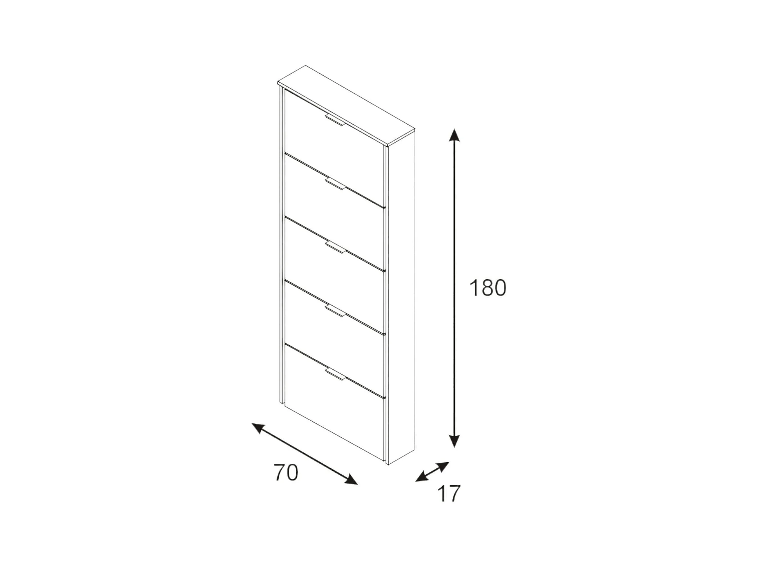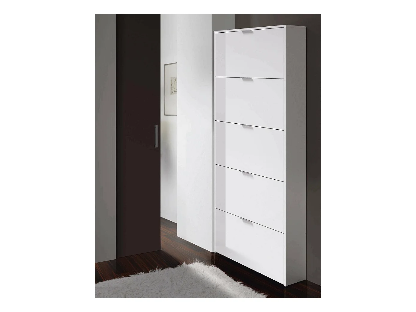Meuble à chaussures Danobile, Meuble à chaussures avec 5 portes battantes, Range-chaussures d'entrée haute, Range-chaussures moderne, 70x17h180 cm, Blanc brillant