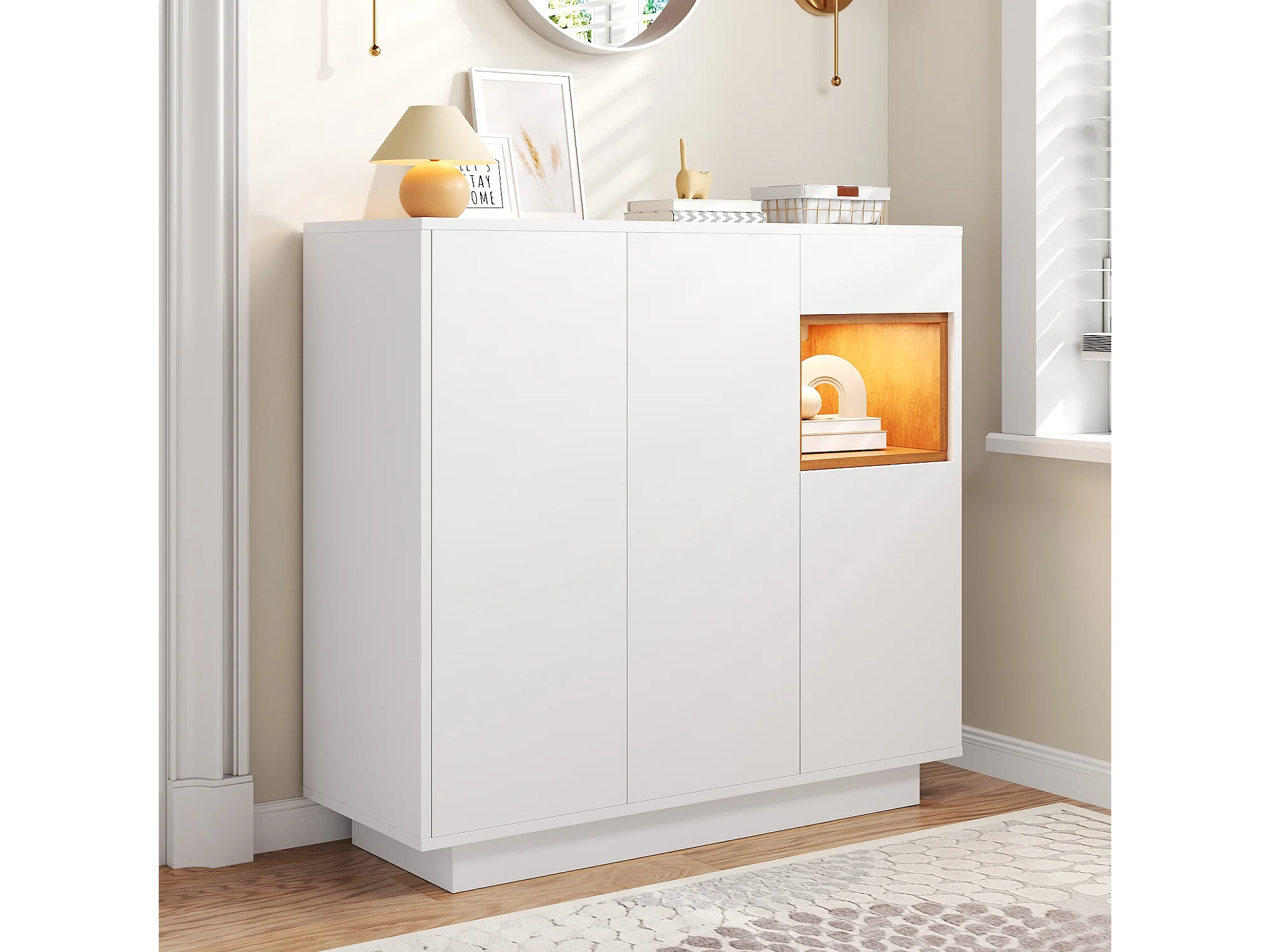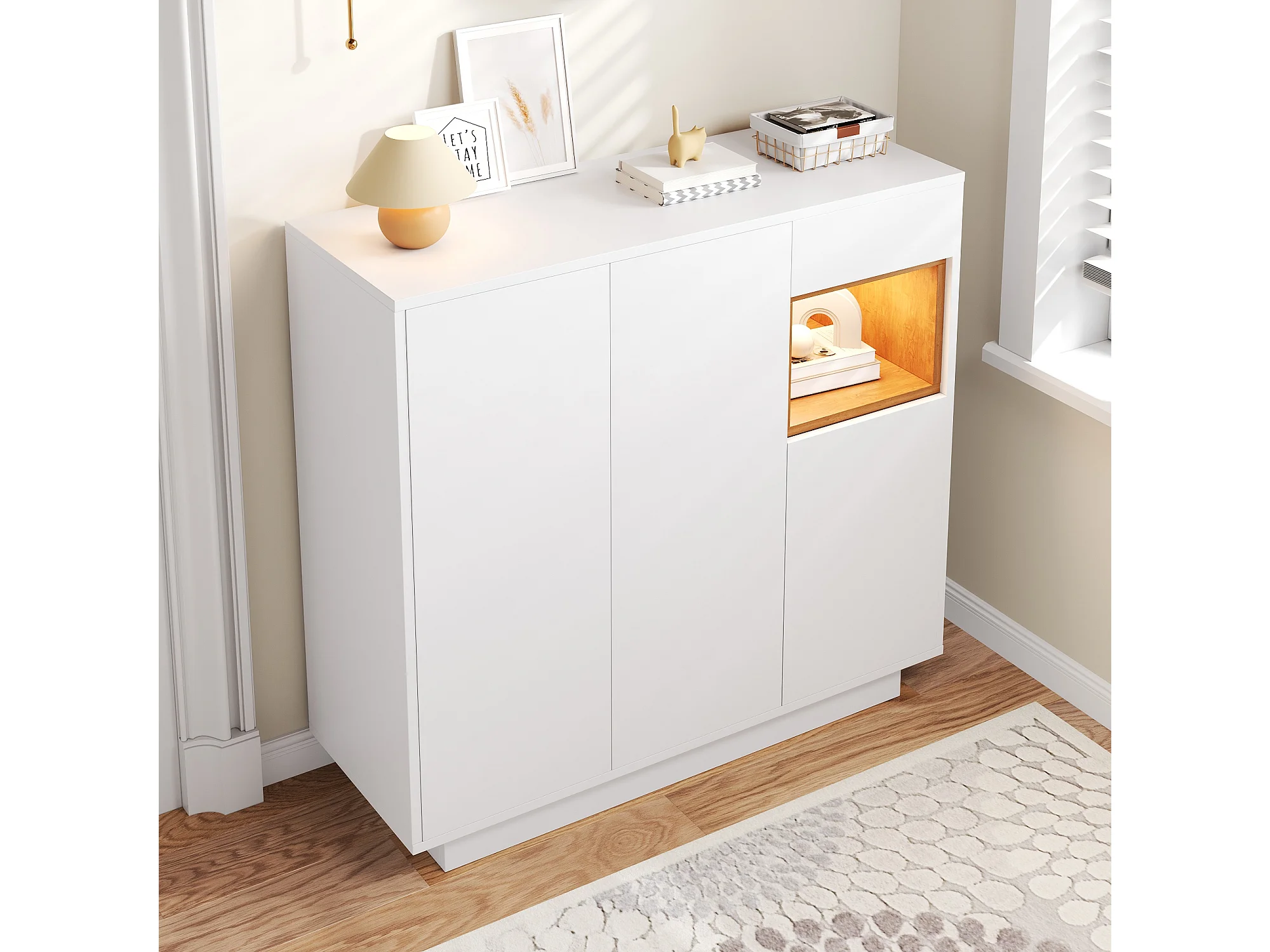 Meuble à chaussures avec 1 tiroir + 3 portes + Leds + étagères réglables - 105 x 39.5 x 100.5 cm - aggloméré - blanc