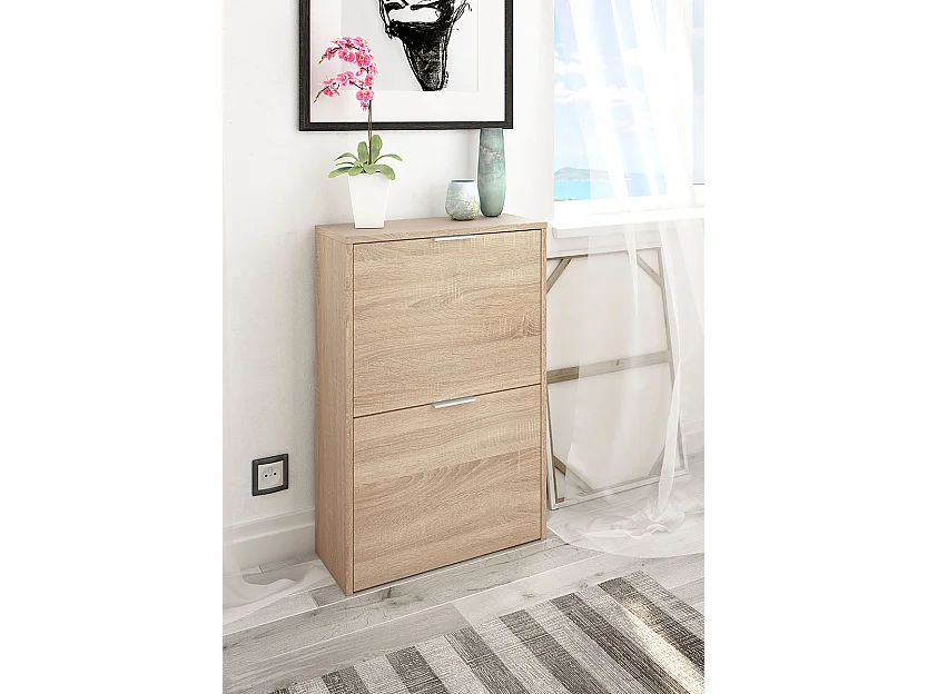 Meuble à Chaussures avec 2 abattants coloris chêne canadien -longueur 50 cm x profondeur 22 cm x hauteur 76 cm