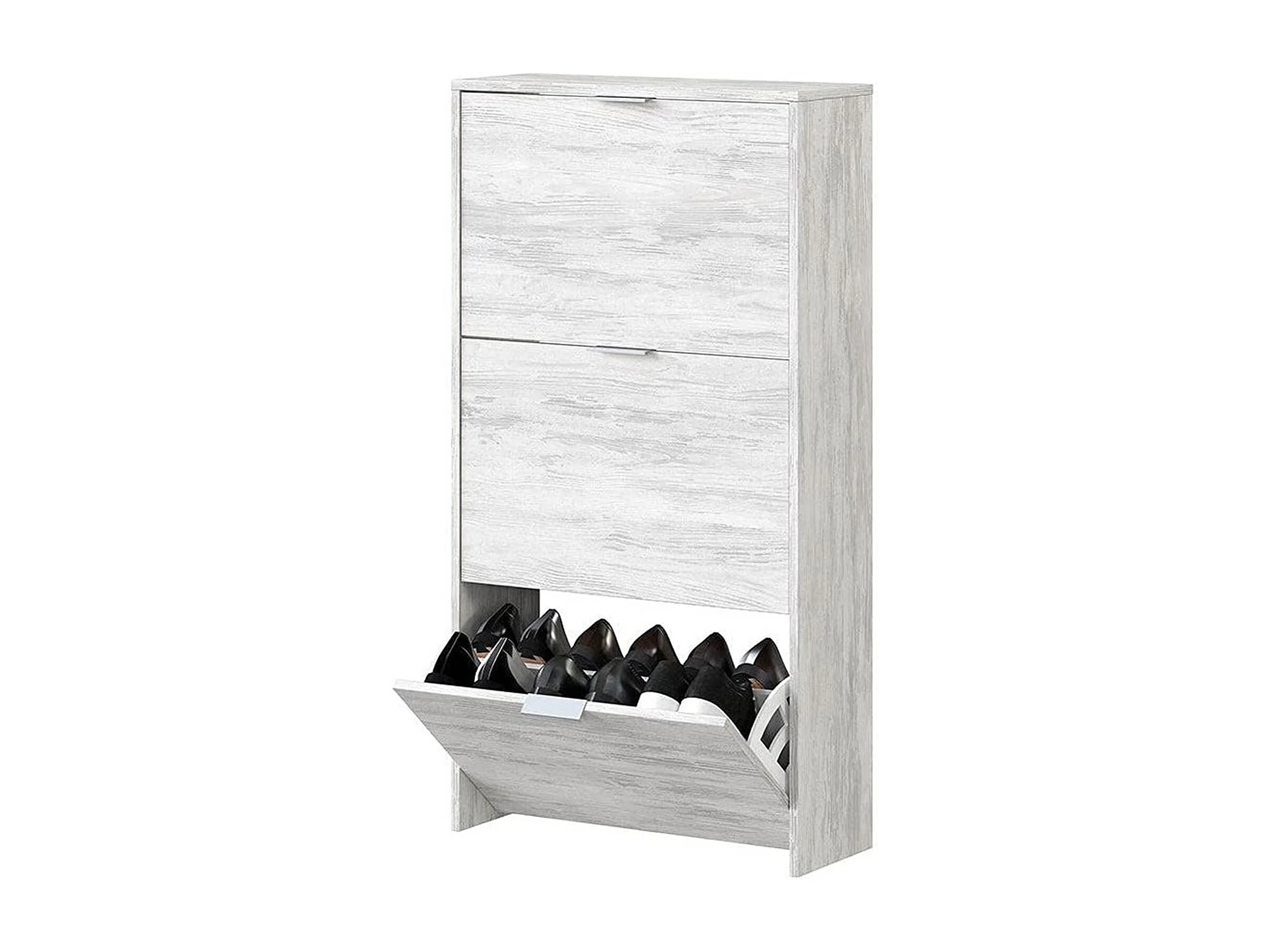 Meuble à Chaussures avec 3 abattants couleur chêne Gris blanchie - Longueur 60 x Hauteur 113 x Profondeur 22 cm