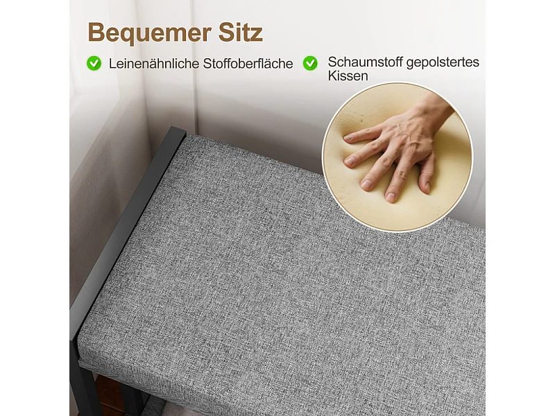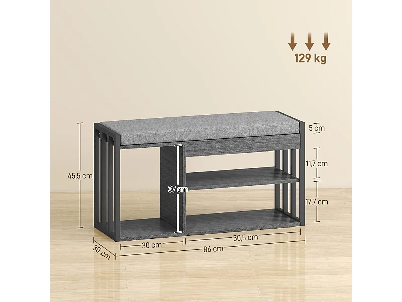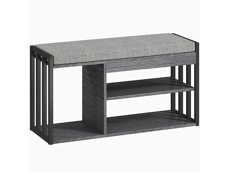 Meuble à chaussures avec banc, étagère à chaussures à 3 niveaux, bois et métal, gris (86x30x45.4 cm)