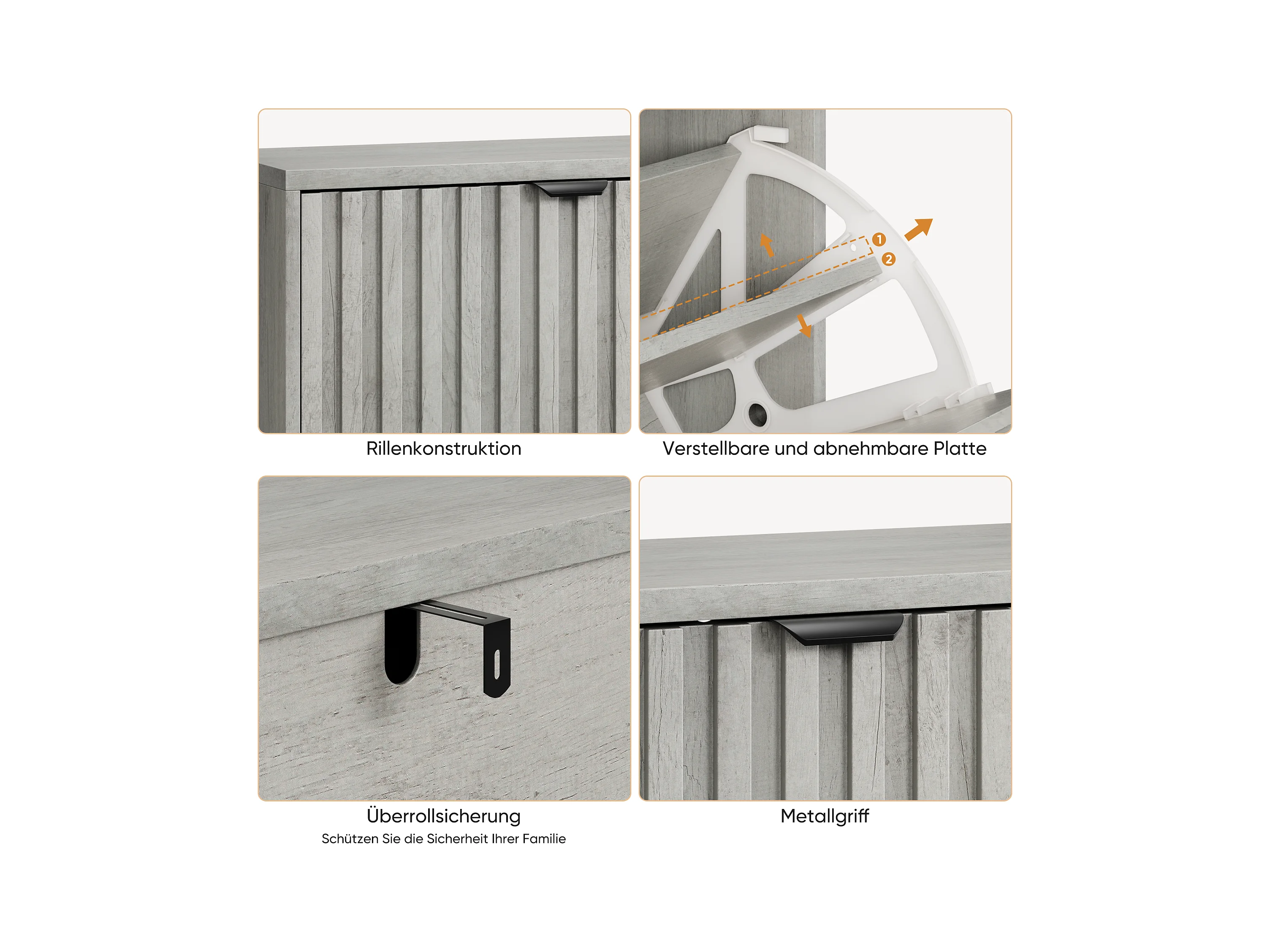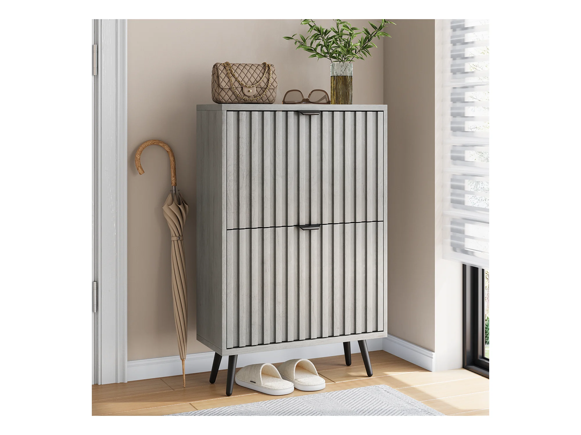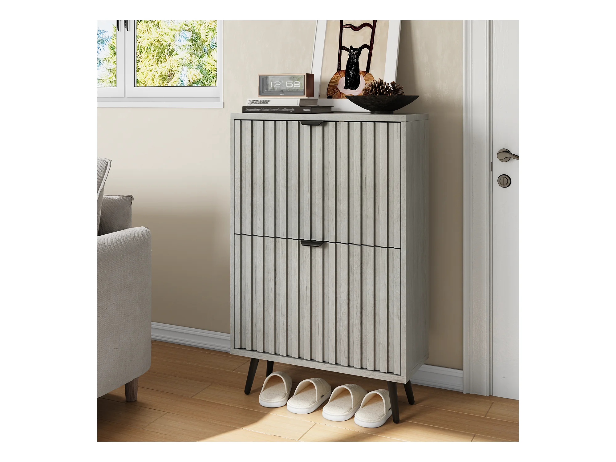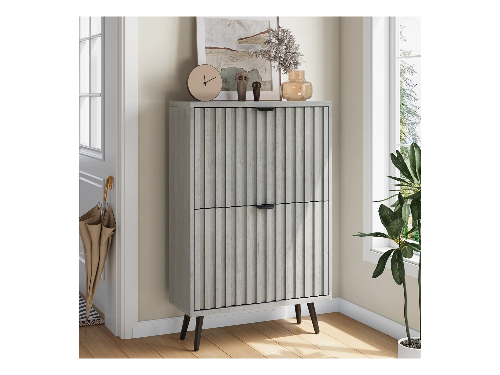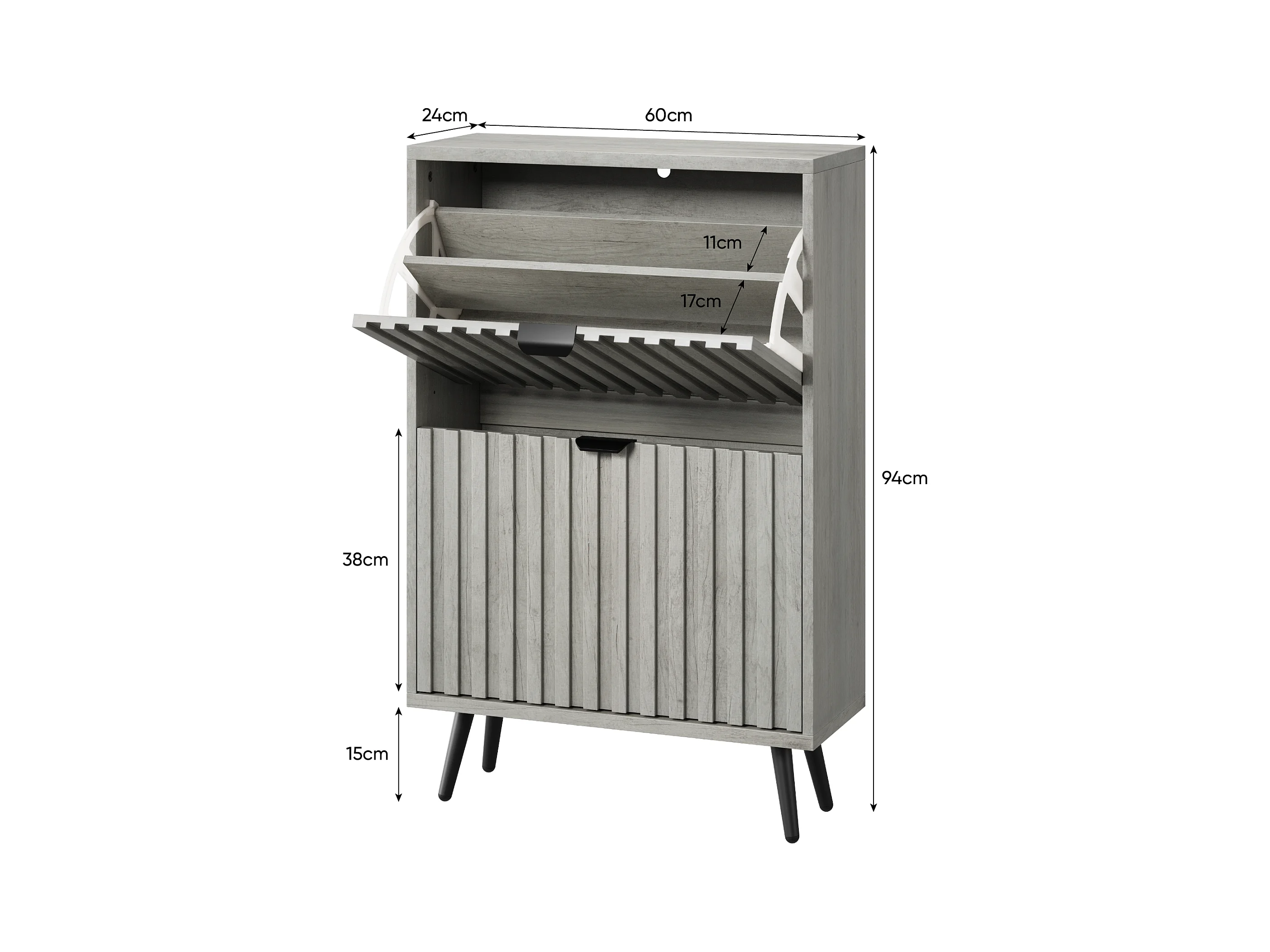 Meuble à chaussures avec rainures, 2 tiroirs rabattables, MDF, gris (60x24x94 cm)