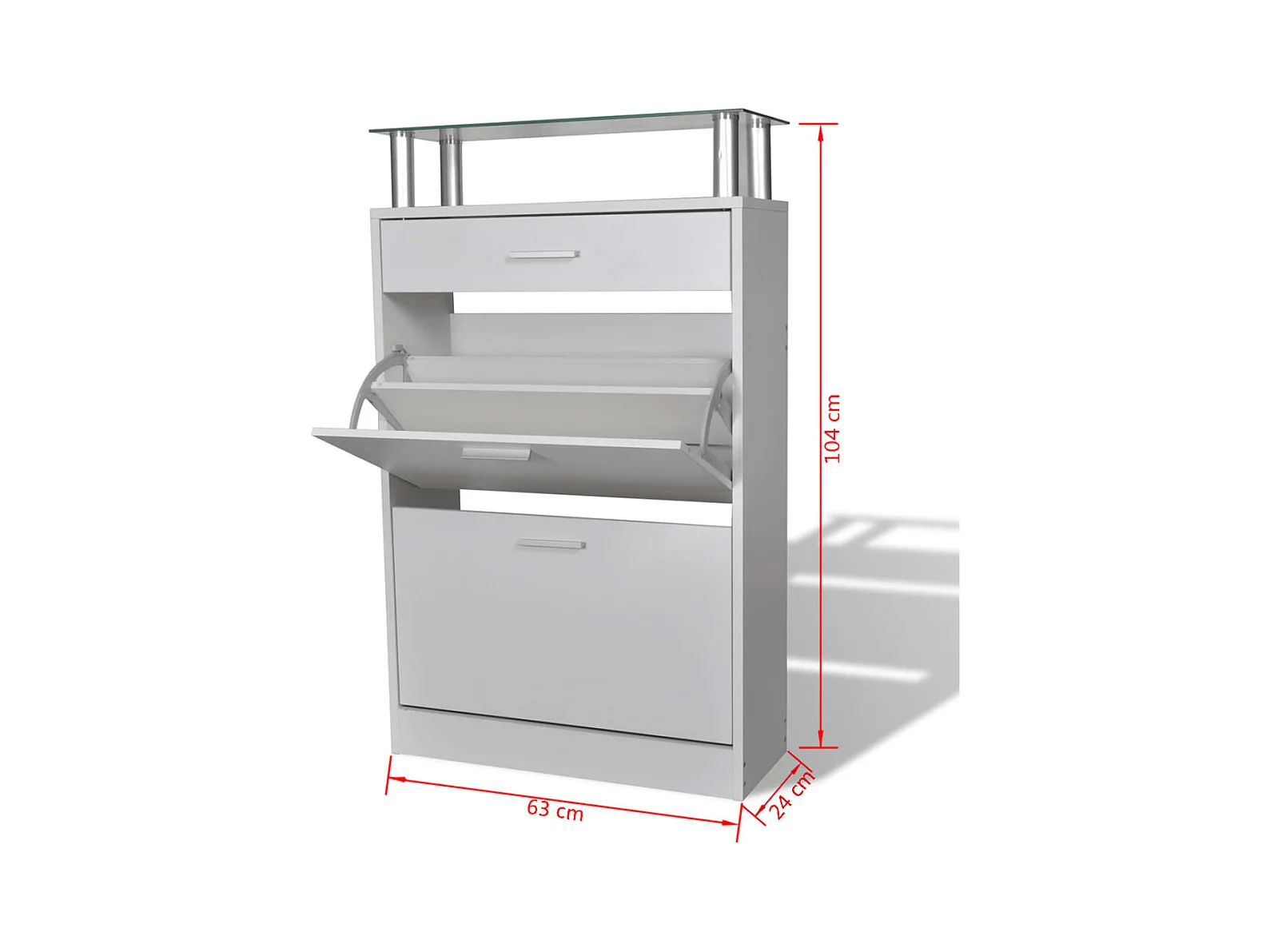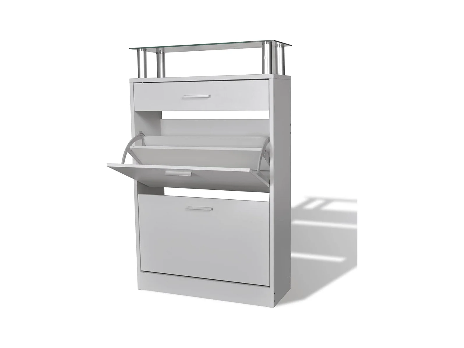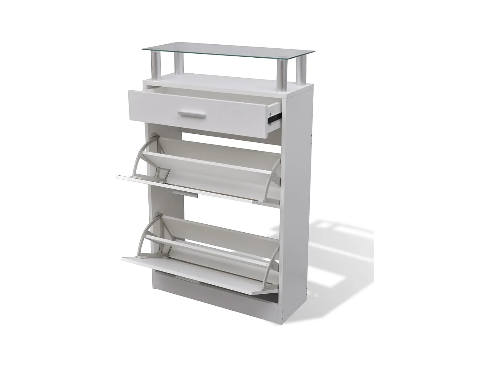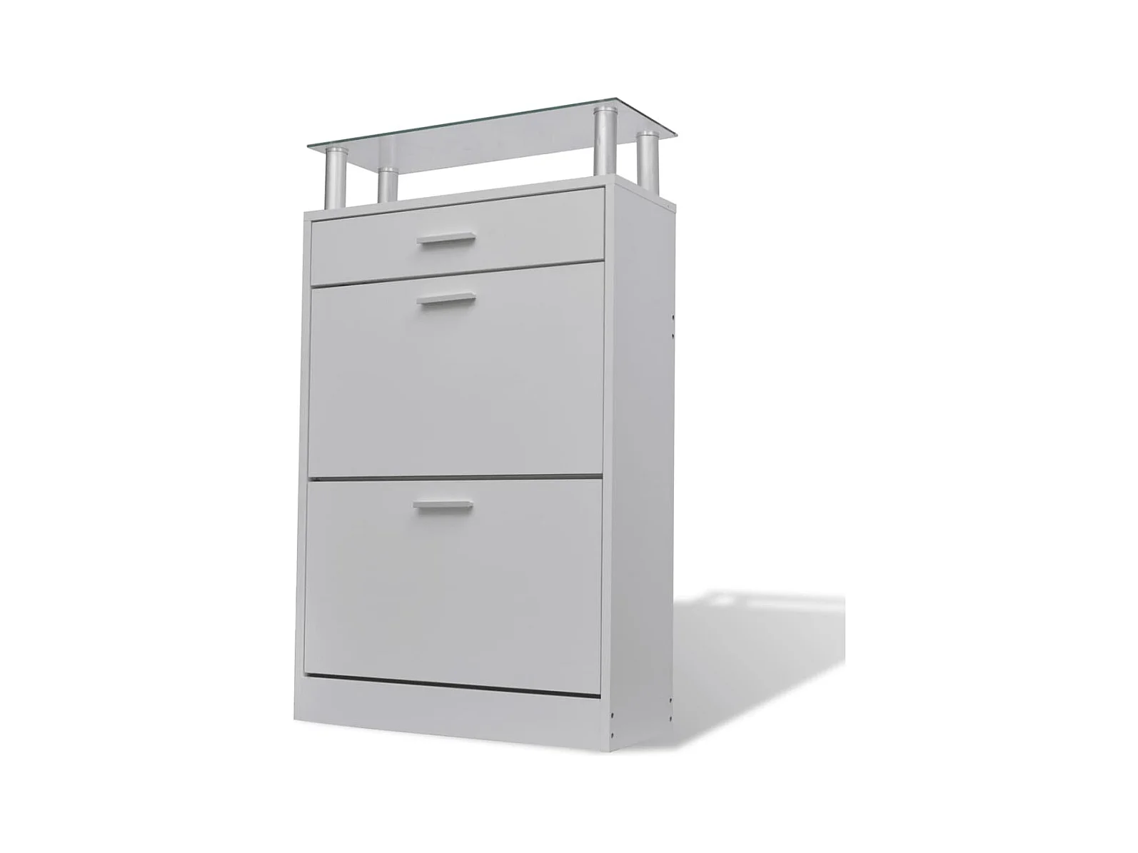 Meuble à chaussures avec tiroir et plateau en verre Bois Blanc