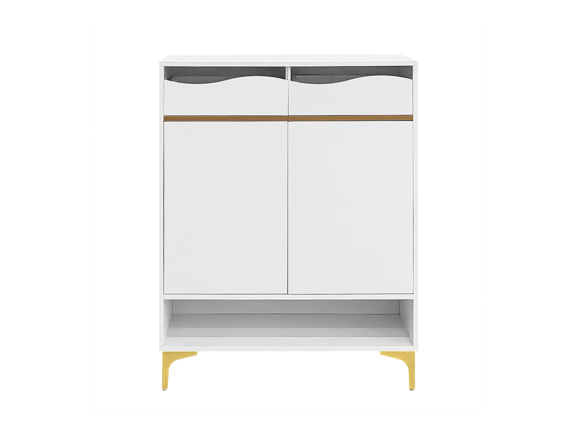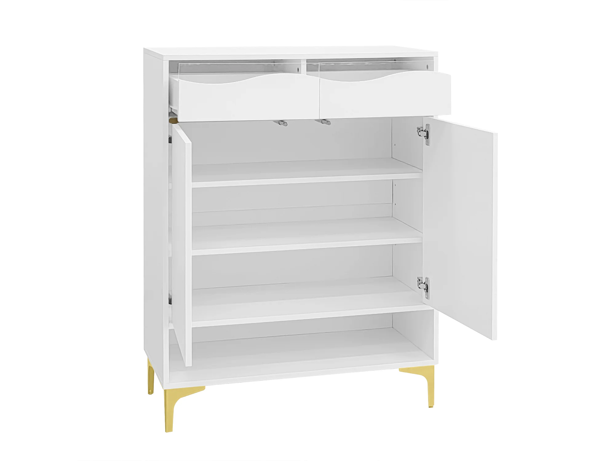 Meuble à chaussures blanc - Meuble à chaussures avec 2 portes et 2 tiroirs - éclairage LED et rangement ouvert - pour salons et entrées