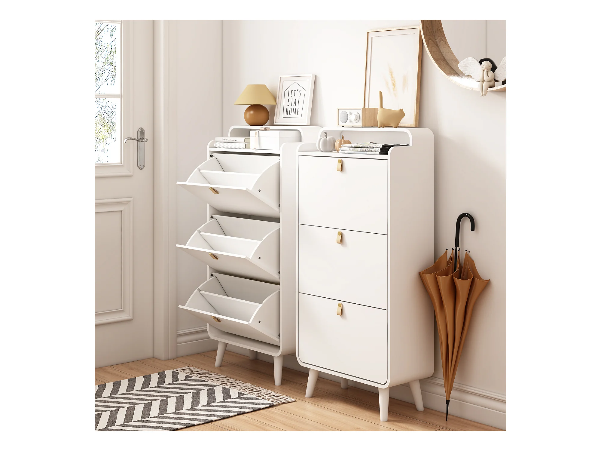 Meuble à chaussures blanc - Meuble à chaussures avec 3 tiroirs pliables et compartiment supérieur - pour entrée et chambre