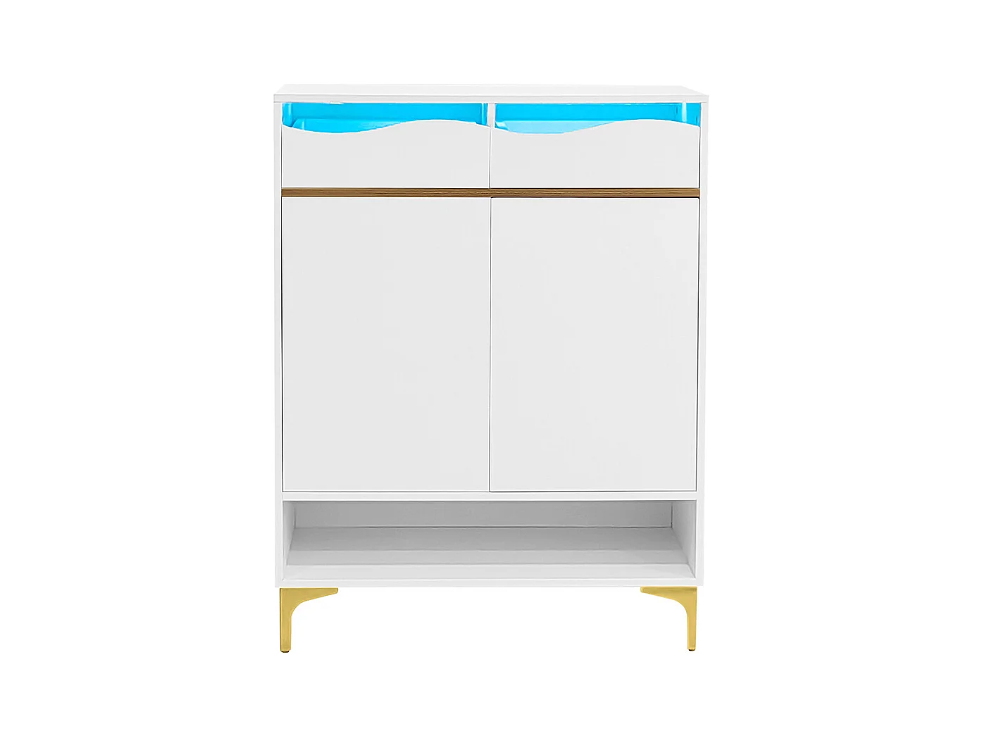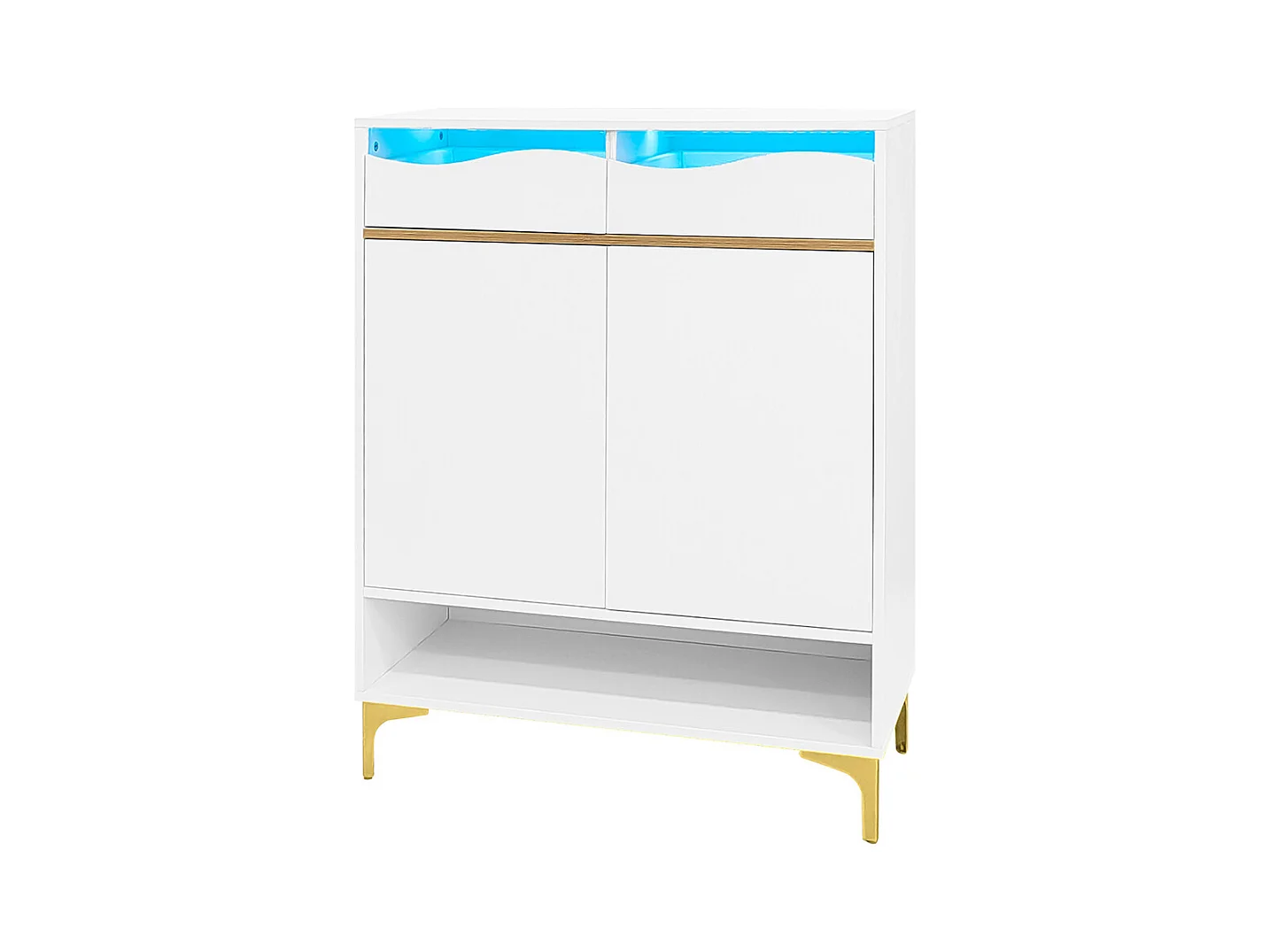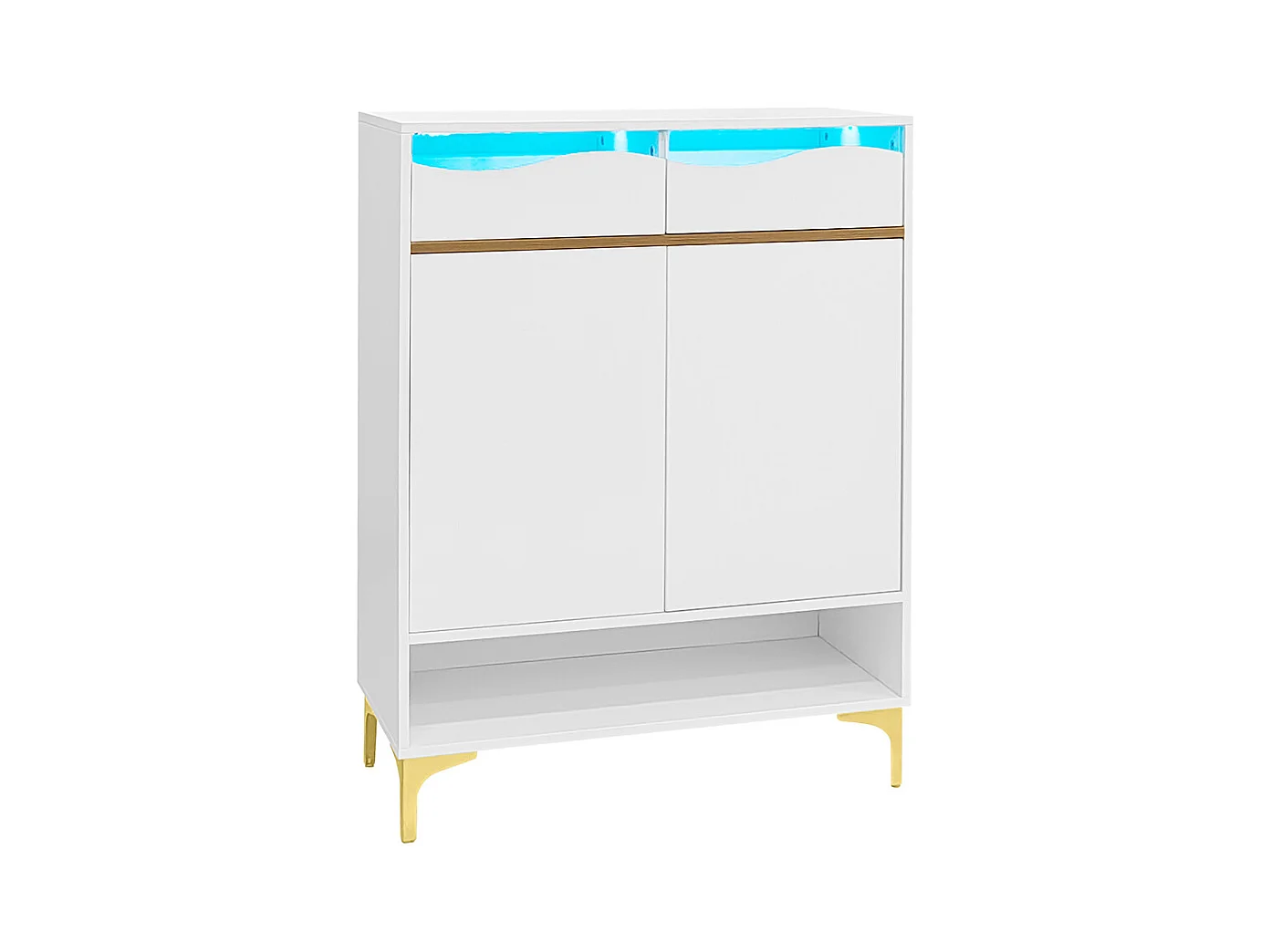 Meuble à chaussures blanc moderne avec LED 16 couleurs avec tiroirs et étagères pour le couloir le salon et l'entrée