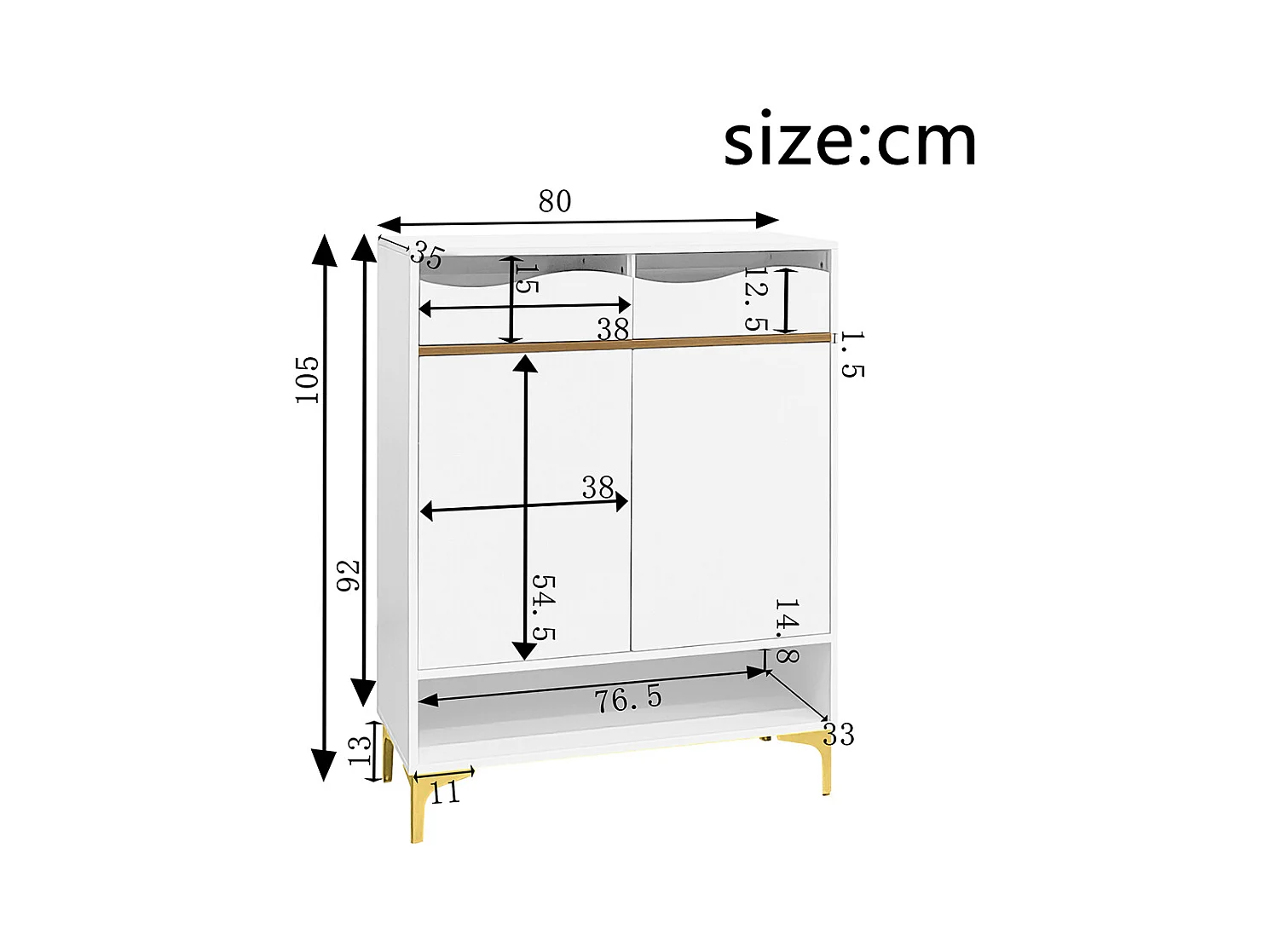 Meuble à chaussures 2 portes blanc étagères réglables poignées dorées